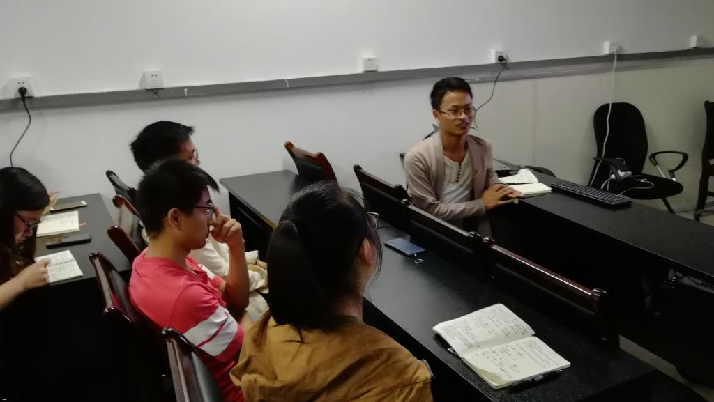 会前支部成员就分享了《我和我的祖国青春版》等歌曲的视频,鼓励大家学唱以《我和我的祖国》为代表的一系列爱国歌,为庆祝祖国成立70周年献出自己的祝福,此次的活动第一阶段,便是支部成员共同合唱《我和我的祖国》歌曲,为了不影响周围实验室的正常工作,此次活动只是小声合唱,合唱结束后支部周洁同学表示:“我和我的祖国一刻也不能分割……”一声声合唱声音虽小但感情真挚,每一句都寄托了我们对于祖国70岁生日的祝福。
