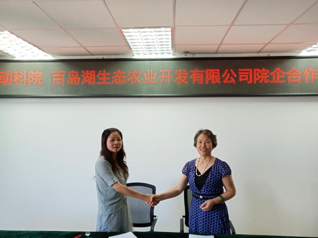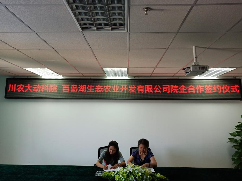 7月5日上午,学院党委书记潘宏与四川百岛湖生态农业开发有限公司总经理陈芝秀在7-1012签订院企合作协议。协议约定百岛湖生态农业开发有限公司作为学院的教学实习基地和学生创业就业实践基地,为学院本科生的教学实习实践和创业就业提供资金、场地和校外导师等必要资源,与学院一道为培养学生的专业实践能力和创业就业能力而共同努力。