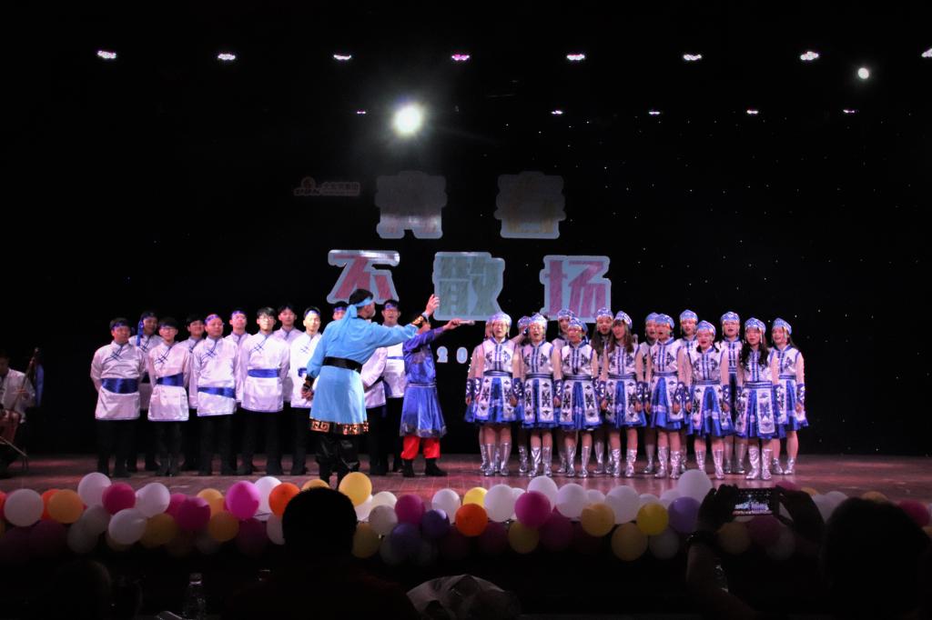 晚会在热烈的舞蹈《personal》中拉开帷幕,舞蹈团的同学们热情澎湃,点燃了这次晚会的火焰。紧接着,就是本次晚会第一轮激动人心的红包环节,首先潘宏书记上台抽取了1000元的红包作为这个幸运学生的家长来校观礼毕业生授位仪式路费,随后董尧老师也上台微信面对面建群,老师们一起在微信群中发红包,在场的同学们激动不已,脸上都洋溢着中奖后的喜悦。随后是小品团的同学们带来的《落叶归根》,在搞笑幽默的同时,又带来缕缕温情。之后是由毕业班同学罗明建和2017级同学张宇带来的对唱《同桌的你》,让台下同学陷入自己年少青涩爱恋的回忆之中。接下来继续的红包环节,更是点燃了台下观众的热情。热闹过后,舞蹈团的同学们又给大家带来热情动感的舞蹈《like it》,这将晚会的氛围推向了高潮。随后,是由两名2018级的同学胡博伦、赵培源带来的相声《随便说一段》,这让大家从红包环节的激动投入到了相声的魅力之中。接下来,又是激动人心的红包挑战环节,会场气氛渐至白热化。接着,是由几位毕业生们带来的节目诗朗诵和合唱,音韵感人,大家都流露出依依不舍的感情。本次晚会最为亮眼的节目,是张新全院长带领着老师和同学们穿着蒙古服装,合唱的《草原上升起不落的太阳》,18级的同学易永康在一旁呼麦、拉马头琴,两名女同学靳蓦然、柯璐在前伴舞,让我们在歌声中感受着大草原氛围。由毕业生周祥睿带领低年级学生魏诚刚等表演的吉他弹唱《等你下课》唯美抒情,让整个晚会在离别伤感的氛围中落下了帷幕。