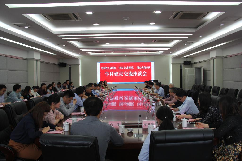 交流会上,动物科技学院党委书记潘宏致欢迎辞,对呙于明院长一行的到来表示热烈欢迎;李学伟和余冰分别介绍了我校畜牧学科发展情况以及动物科技学院和动物营养研究所的师资队伍、科学研究、人才培养、社会服务、对外交流合作等方面情况,希望继续加强与中国农业大学动物科学技术学院在学术交流、项目合作等方面的合作。吴德简要介绍了我校整体发展和国际交流合作情况,并希望与中国农业大学畜牧学科在外籍教师聘用、建立青年教师相互交流机制等方面进行资源共享和深入合作,继续发展与中国农大动物科学技术学院的深厚友谊,持续推动两校畜牧学科的共同进步。