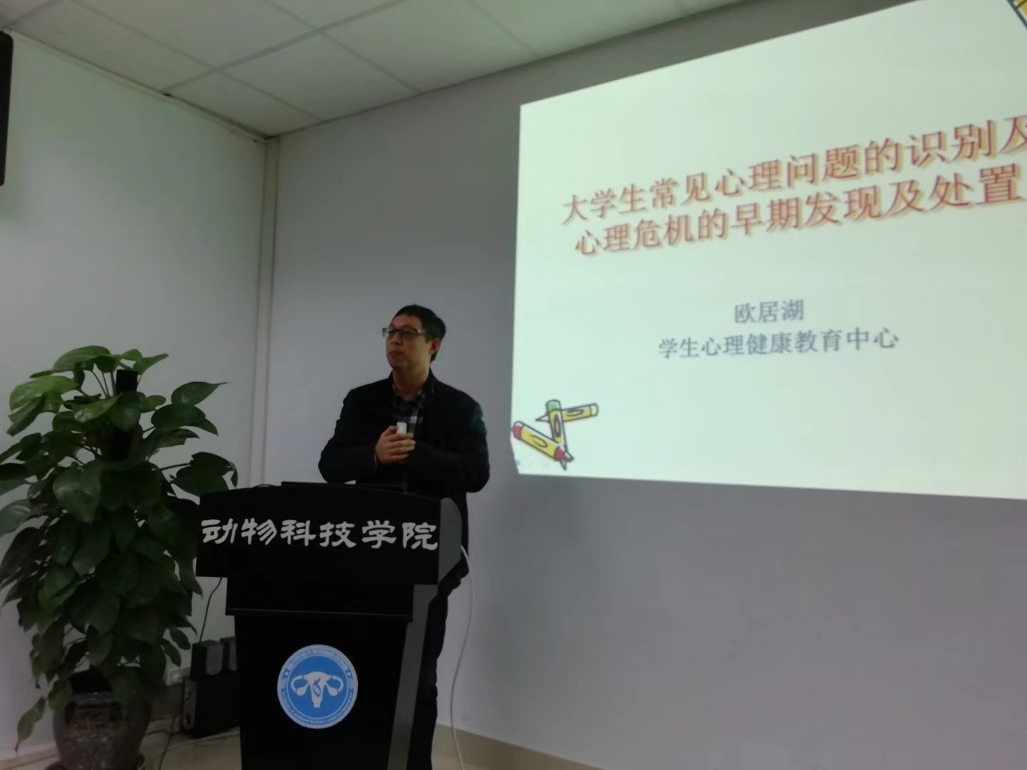 11月26日晚7点半,学院在7-1012举行“心理危机识别与干预”班主任专题培训,学生处心理健康教育中心主任欧居湖副教授担任主讲,全体在校班主任老师参加了培训,党委书记潘宏主持培训。
