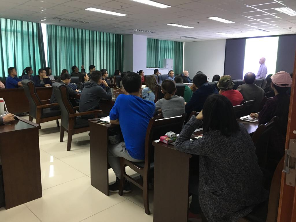 Jing-Jiang Zhou教授做了题为《Insect Chemosensory》(昆虫的化学感应)的学术报告。报告主要从昆虫的触觉神经及不同类型的触角感器来进行报告,并希望通过果蝇的外围嗅觉系统来研究跟衰老相关的一些机理。他是英国皇家洛桑研究所生物化学部资深科学家、博士生导师,主要从事化学信号在生物之间传递机制的研究,在昆虫嗅觉识别机制方面有很多建树。