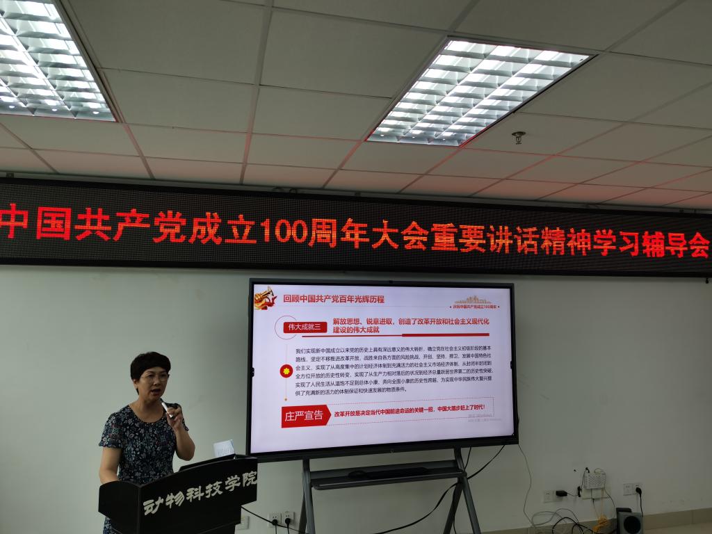 7月6日下午4点,学院在7-1012会议室举行习近平总书记在庆祝中国共产党成立100周年大会上的重要讲话精神学习辅导报告会,报告会由党委书记付瑞琼主讲。