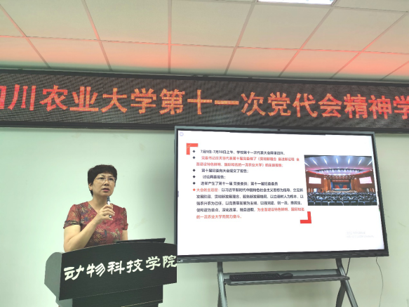 学习中,付瑞琼结合学院的实际情况,就报告中学科专业建设、人才培养、科技创新、科教融合等与学院密切相关的内容进行了重点解读,号召全体教职工继续深入学习贯彻党代会精神,聚焦畜牧学科的国家一流学科、水产养殖国家级一流专业创建,争取在动物育种方面攻克一些“卡脖子”的核心技术,瞄准“川猪”“川鱼”等优势特色产业集中攻关,积极投身乡村振兴,真抓实干、攻坚克难,在学校全面建设特色鲜明、国际知名的一流农业大学的新征程中贡献应有的动科力量!