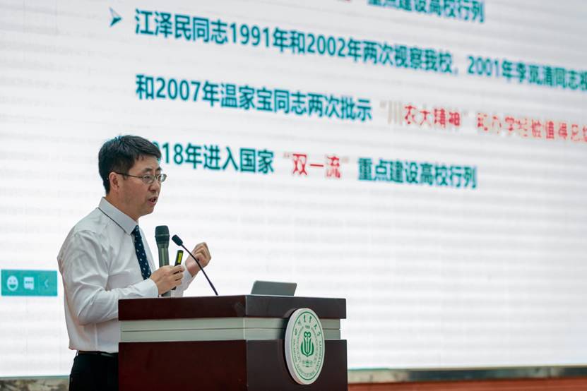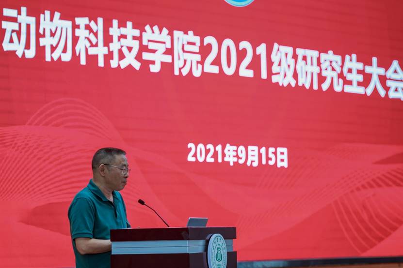 金色九月,秋高气爽。9月15日下午,四川农业大学动物科技学院2021级研究生大会在成都校区第二教学楼报告厅顺利举行。院长朱砺教授、院党委书记付瑞琼副教授、副院长王继文教授,各系室主任、全体研究生导师及2021级新生出席本次大会。大会由王继文教授主持,本次大会还采取网络直播方式与雅安校区及留学生同步进行。
