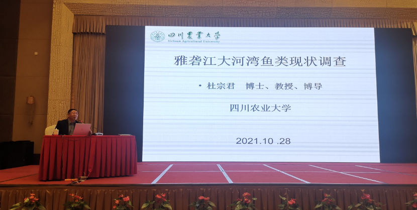 基于长江“十年禁渔”大背景下,为落实习近平总书记关于长江“共抓大保护、不搞大开发”的系列指示精神,四川省水产局、四川省水产学会于10月27日-29日在都江堰市召开长江上游水生生物养护研讨会,中国科学院水生生物研究所、上海海洋大学、四川农业大学的专家学者及各地市州渔政管理部门等单位参会,四川省水产局副局长罗本彬出席会议并作讲话。动科学院水产系6位教师参会,杜宗君教授、严太明副教授、刘巧博士应邀为大会作学术报告。