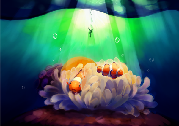 郑子墨手绘作品《公子小丑鱼》