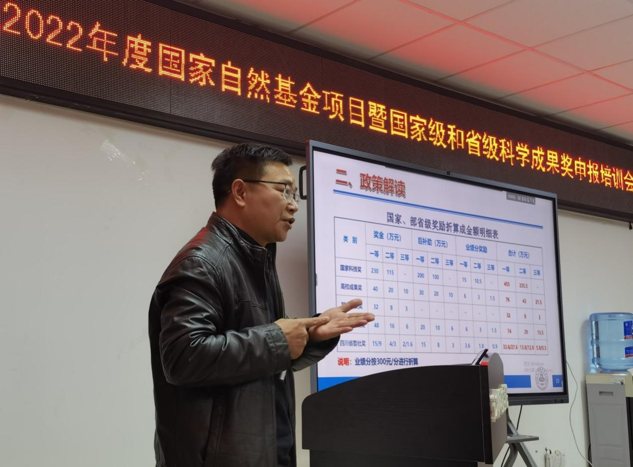 科技处副处长刘杨为大家做2022年科技奖励申报动员,从历年科技奖励情况简要回顾、政策解读、摸底情况、2022年相关申报计划安排四个方面讲解了学校国家级和省级成果申报工作情况并介绍了相关经验。动物营养所冯斌教授围绕国家自然科学基金项目申报注意事项,从自身相关工作经验出发向大家深入介绍了全国近三年自然科学基金项目申请和批准情况、国家自然科学基金评审规则、基金不断改革后的新举措、撰写注意事项等内容。