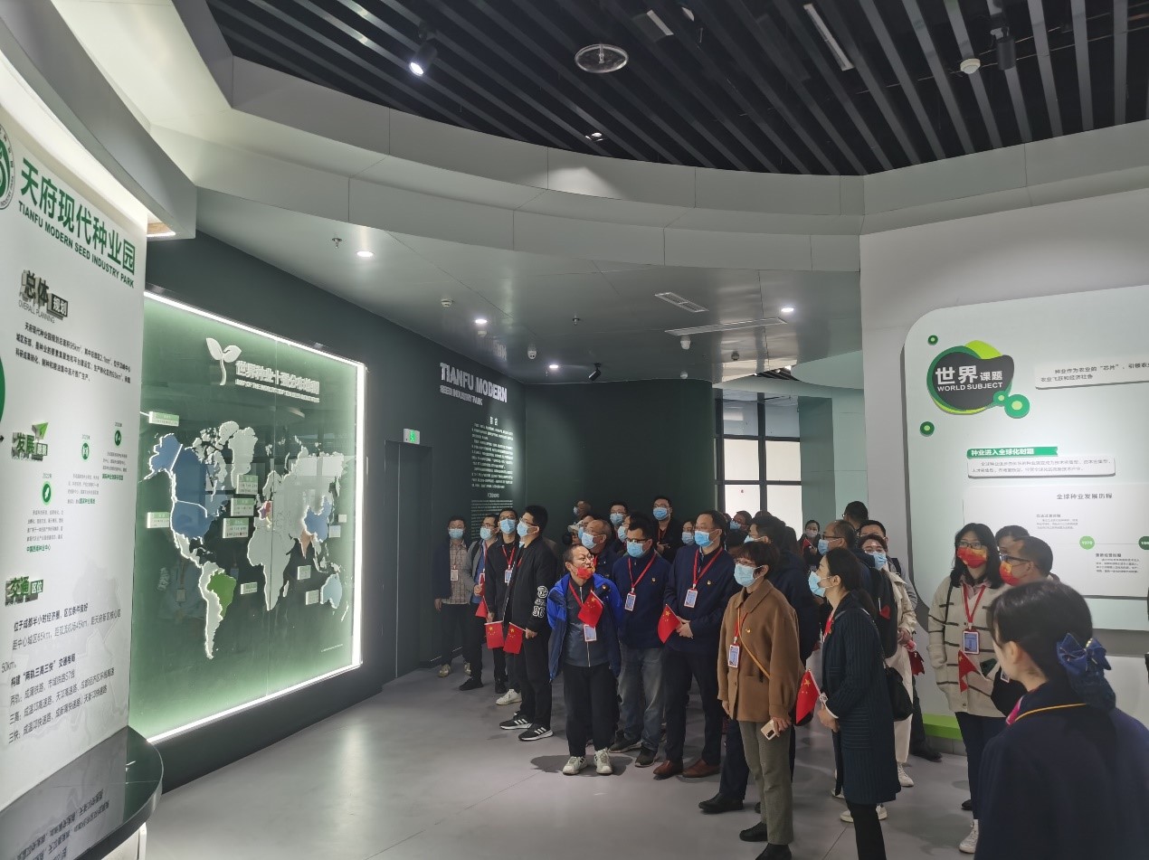 在邛崃天府现代种业园,大家在讲解员的带领下了解了种业园的建设背景、组织架构、科创服务和促农增收成效,结合种业园建设西部农业种质资源中心、种业创新中心、种业企业集聚地、国家级种业基地、西部种业博览中心“五大行动”的进程,更加认识到了我校畜牧、水产和草学在西部地区助力“种业翻身仗”的历史贡献和未来使命。