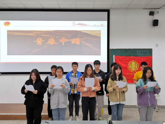 随后,由动科202101团支部带来的集体朗诵节目《青春中国》,为团日活动奠定了爱国、青春、奋进的基调,青涩而坚定的朗读声似一股股心流,流入每位青年心间。