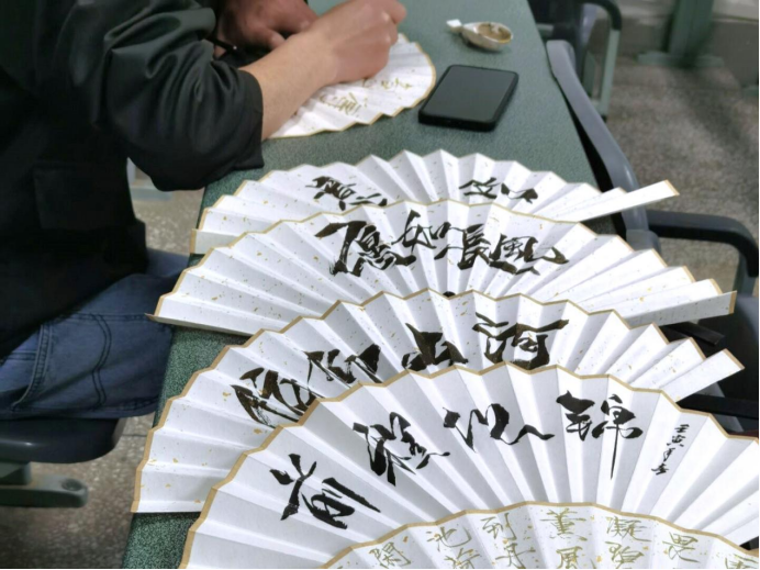 活动接近尾声,学生书画协会同学现场绘制了精美的书画扇子,并以莎士比亚的名言作为线索贯穿于游戏中,通过为不同参赛同学随机编写小故事,为同学们带来了欢笑与对现实事迹的沉思。