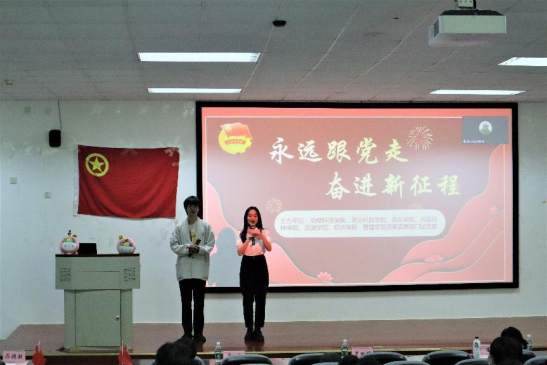 2022年4月22日中午12:30,“永远跟党走,奋进新征程”示范性团日活动在4-A102成功召开。本次示团由动物科技学院、草业科技学院、园艺学院、风景园林学院、资源学院、经济学院、管理学院共七院团委直属部门团支部联合开展。各院团委指导老师、校团委与各院学生兼职团委副书记、校团委组织建设与发展中心主要负责人线下参与活动,线上、线下共计500余名团干青年参与其中。