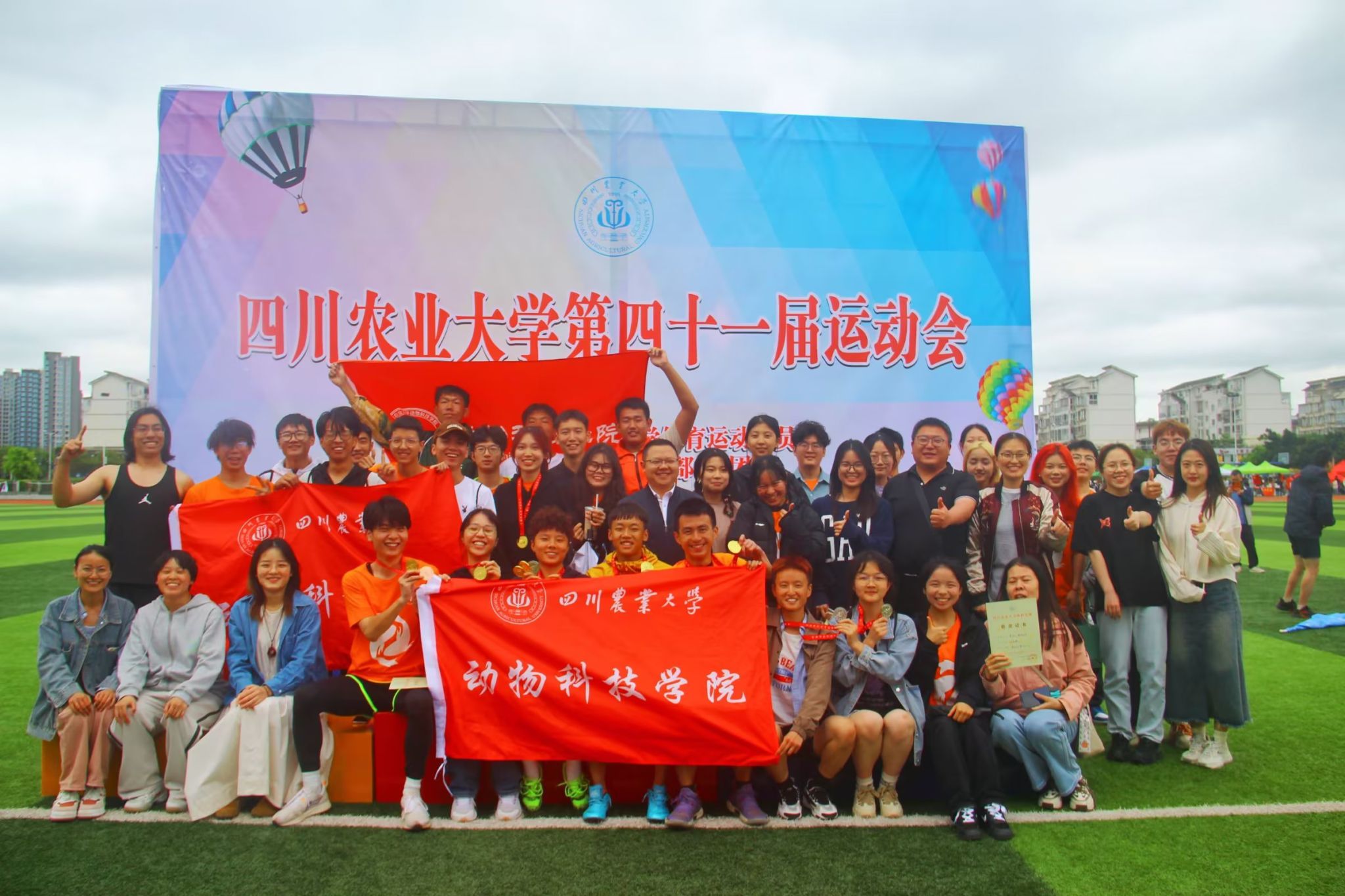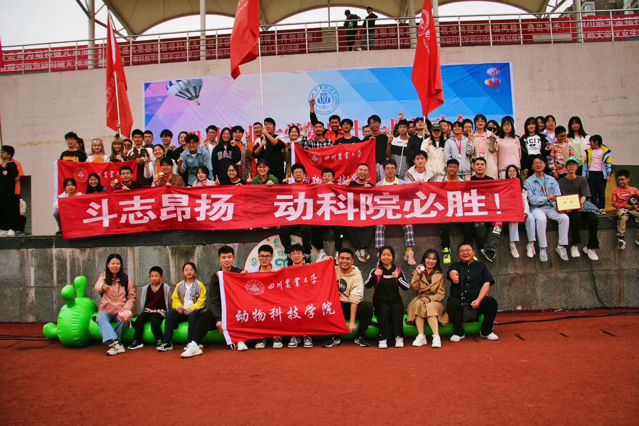 学院运动健儿运动赛场上尽展锋芒,显现出别样的青春风采,以团体总分338分的优异成绩摘得本届校运会(成都校区)团体总分第一名。学院运动健儿用成绩展现了“斗志昂扬,动科院必胜!”的口号,用实际行动诠释了拼搏、努力、坚持的价值观念,展现了动科学子拼搏、无畏、团结、向上的精神风貌。