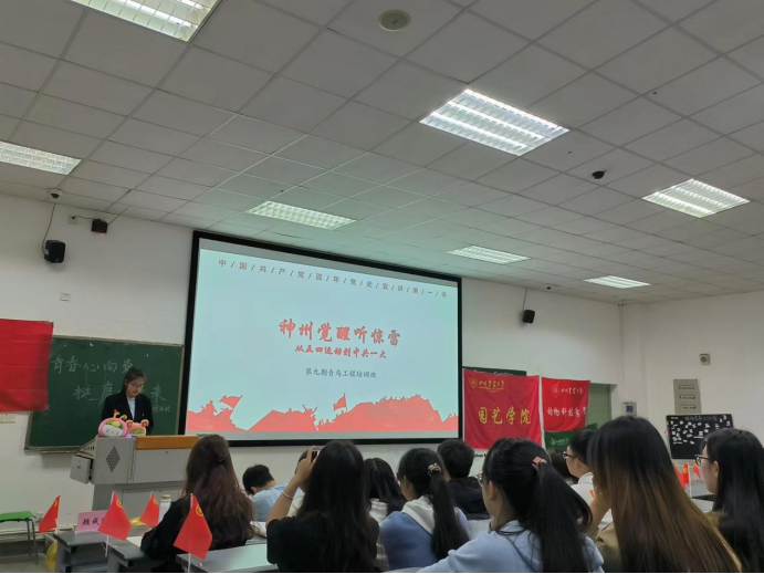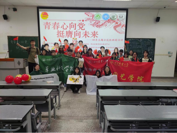 为持续深化学习贯彻习近平总书记关于青年工作的重要思想,引导青年学生深刻感悟党领导中国青年运动的光辉历程,以纪念五四运动104周年为契机,厚植川农青年爱党爱国情怀,动物科技学院团委直属部门流动团支部、园艺学院团委直属部门流动团支部、草业科技学院团委直属部门流动团支部、动物科学202205团支部、草学202103团支部、茶学202204团支部、学生手工协会团支部联合开展本次“青春心向党,挺膺向未来”示范性班团活动。活动以4A108为主场地,学院全体师生团干及部分团员青年共计200余人参加活动。