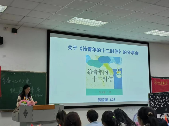 随后,园艺学院党委办公室易滢瑾老师进行了《给青年的十二封信》的好书分享,她告诫在场同学:“人生的得意和消沉都是正常的,而这些都给世界带来了精彩,各位团员青年应坚定理想信念,用正确的态度活出精彩的人生。”最后,由学院团委学生兼职副书记郑千里同学对此示范性班团活动进行总结。