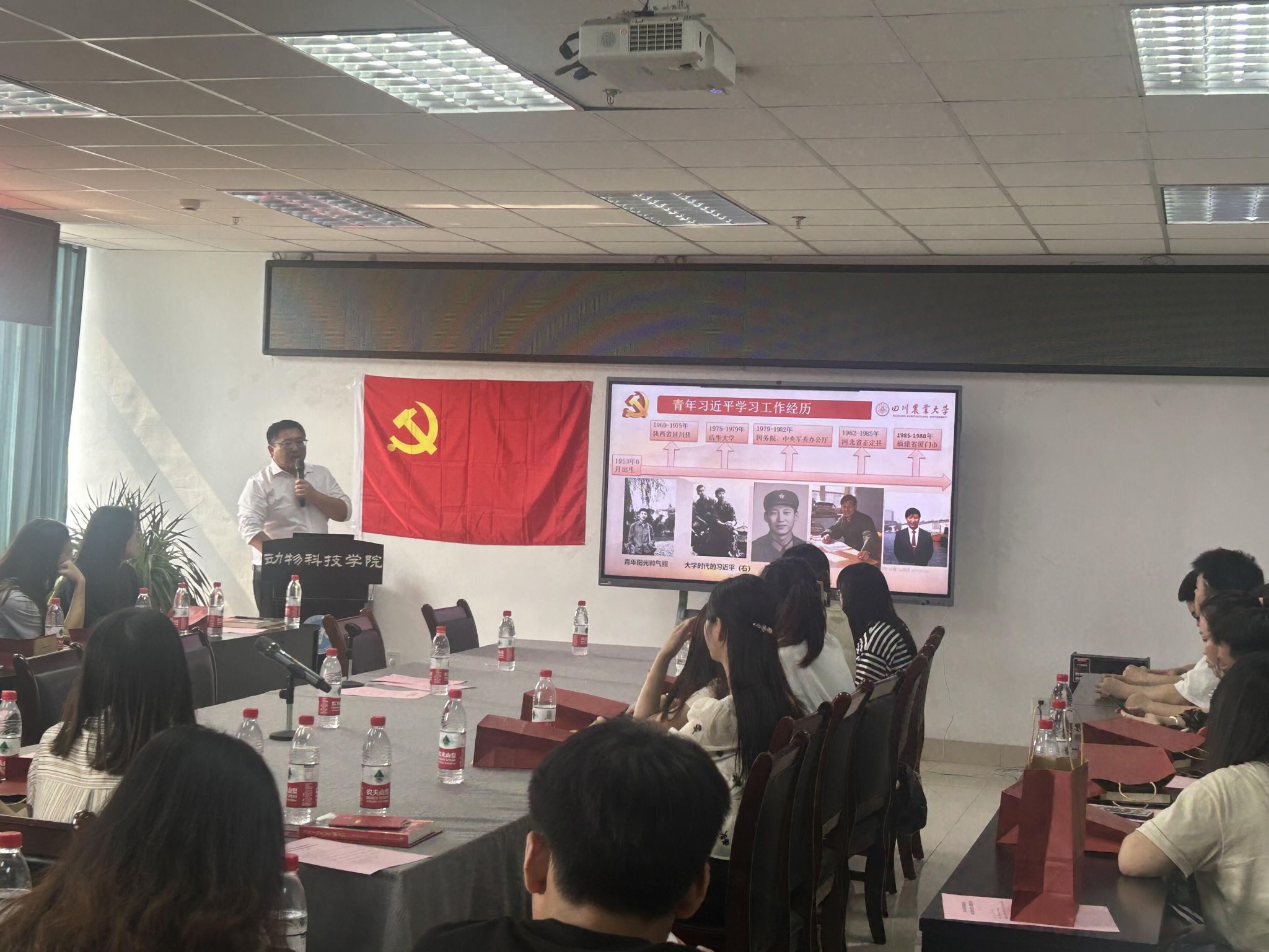 根据学校党委关于开展学习贯彻习近平新时代中国特色社会主义思想主题教育理论学习的部署要求及《关于处级以下党员干部参加主题教育的通知》精神,推进学生党员理论学习常态化,推动主题教育走深走实,按照学生工作部统一部署,5月30日下午动物科技学院主题教育辅导员系列宣讲公开课第六季开讲。80余名学院毕业生党员到场聆听。