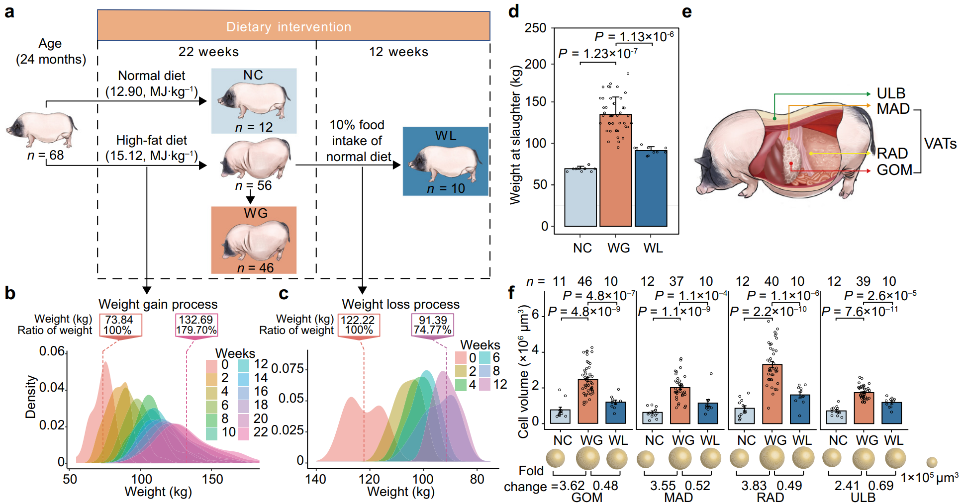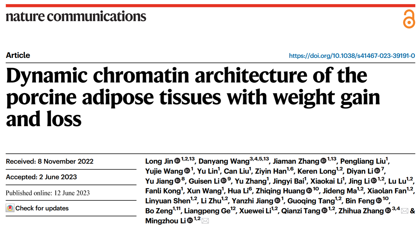 近日,学院猪遗传育种团队与中科院北京基因组所团队合作在《NatureCommunications》发表了题为“Dynamic chromatin architecture of the porcine adipose tissues with weight gain and loss”(猪增重和减肥过程中脂肪三维基因组动态变化)的研究论文。该研究在三维基因组层面系统揭示了家猪在增重与减肥过程中不同部位脂肪组织的转录调控特征,结果为深入解析猪脂肪性状形成的分子机理、利用分子育种技术改良脂肪性状进而培育优质高效猪新品种提供了重要数据和理论支撑。学院金龙副教授为第一作者,博士生王丹阳和张佳满为共同第一作者,李明洲教授和中科院张治华研究员为共同通讯作者。
