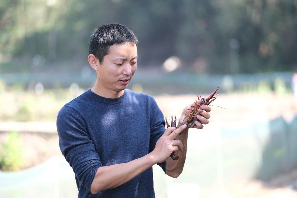 为了让这创新核心技术最大限度帮助返乡创业者和老百姓增收致富,在实践探索中,杨海成立了南溪区特种水产养殖协会,创办养殖技术教学培训基地,总结开创“公司+学校+农场+协会+农户”五位一体的产业发展格局,先后带动50余名返乡创业青年参与稻虾养殖,推动宜宾稻虾产业成为全省的先进示范产业区。在2020年~2022年充满机遇和挑战的特殊时期,公司全体员工发扬“南溪铁军”的创业精神,充分发挥“五位一体”产业战略优势,凭借“反季节错峰上市”创新模式,让南溪稻虾产业不受疫情影响,实现弯道超车,逆势增长,帮助南溪及周边地区1200多位农户养殖的两万多亩稻虾增收致富。