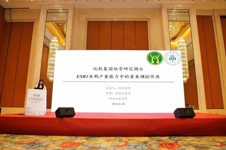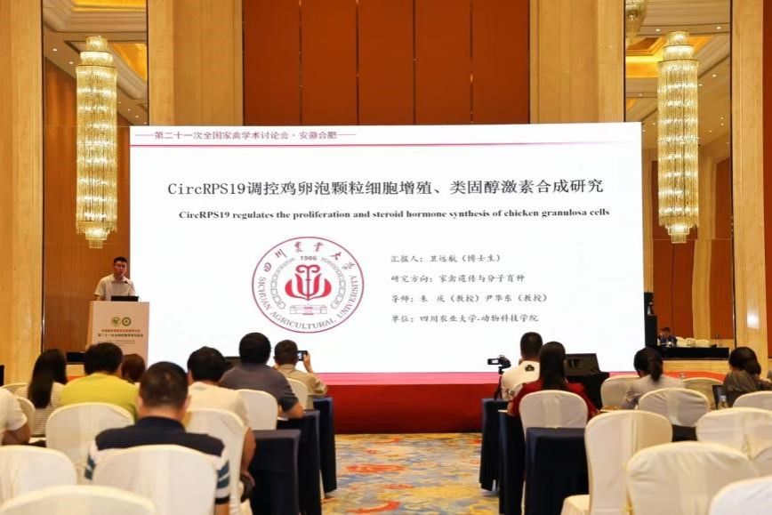 与会期间师生积极参与学术交流,中国家禽学会常务理事、学院副院长赵小玲教授作了题为“鸡肝脏脂质代谢的遗传调控机制研究”的学术报告,首次从育成期至产蛋后期三个阶段解析了禽肝脏脂质代谢的遗传调控机制。学院博士研究生卫远航、欧阳清渊,硕士研究生刘艳婷分别汇报了“CircRPS19调控鸡卵泡颗粒细胞增殖、类固醇激素合成研究”“比较基因组学研究揭示ESR1在鹅产蛋能力中的重要调控作用” “环境富集对笼养蛋鸡培育质量的影响研究”报告,充分展示了我校在家禽繁殖性能的分子调控机制和环境富集改善动物福利等领域的最新研究进展,对提升研究生综合素质和推动我国家禽遗传育种和健康养殖具有十分重要的意义。