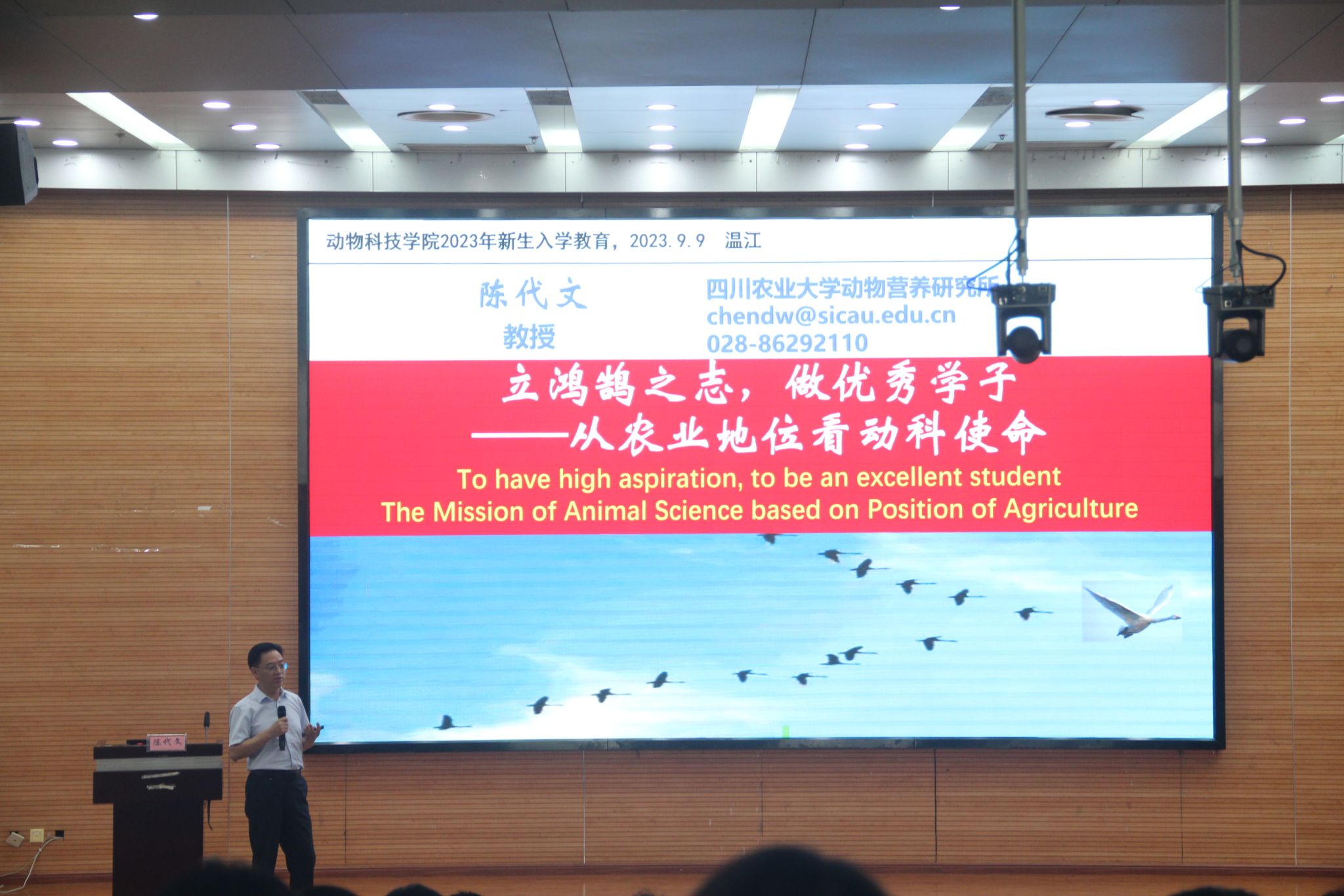 9月9日-10日,动物科技学院2023级本科生、研究生新生大会和新生入学教育大会分别在第二教学楼学术报告厅和图书馆学术报告厅顺利举行。国家级教学名师陈代文教授、学院院长朱砺、学院党委书记何桦、学院副院长杨淞、学院副院长赵小玲、水产养殖系主任陈德芳、动物科学系主任张明、学院行政办公室主任孙贤刚、学院党委办、行政办老师、专业老师、新生班主任、各小班班助驻党同学以及2023级新生出席本次大会。大会由赵小玲主持。