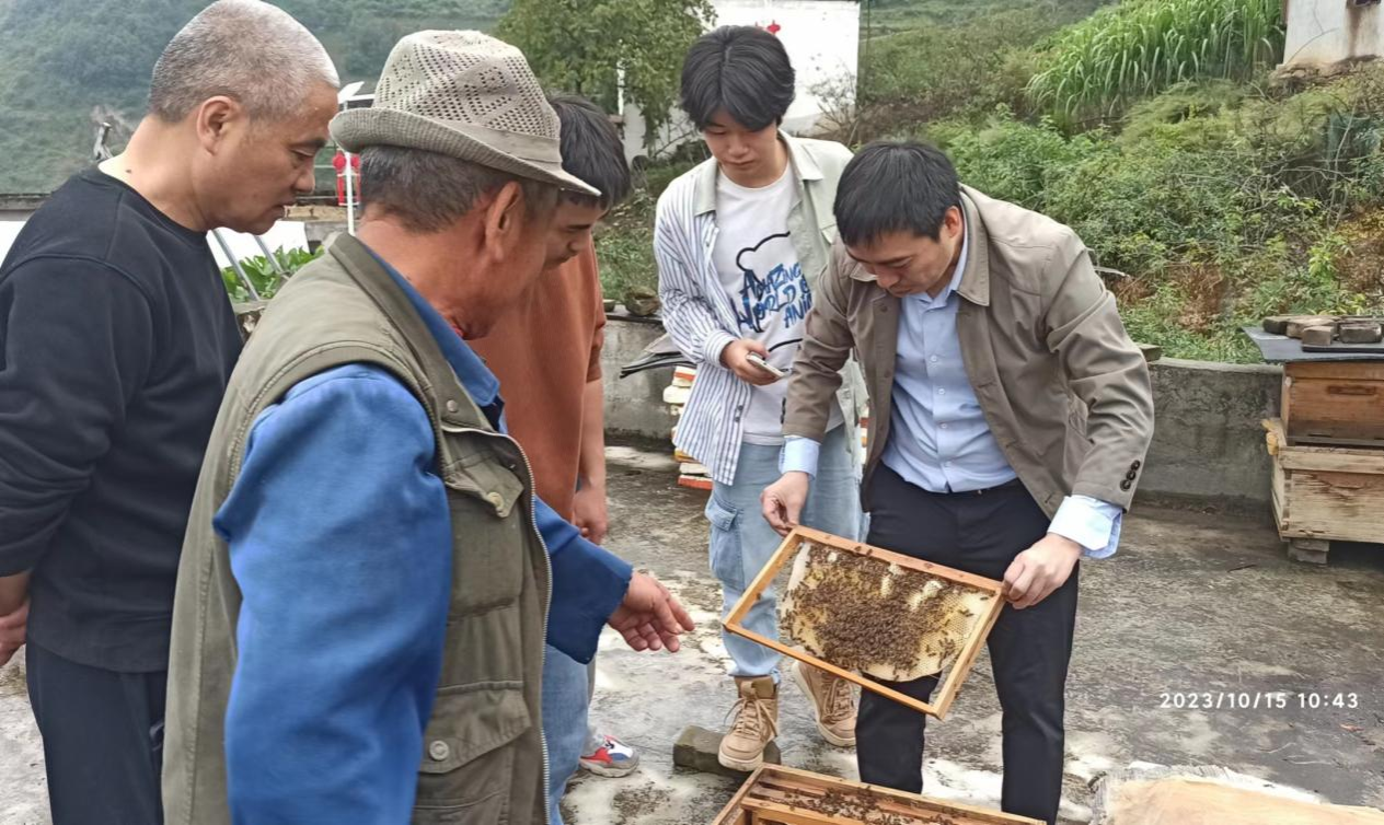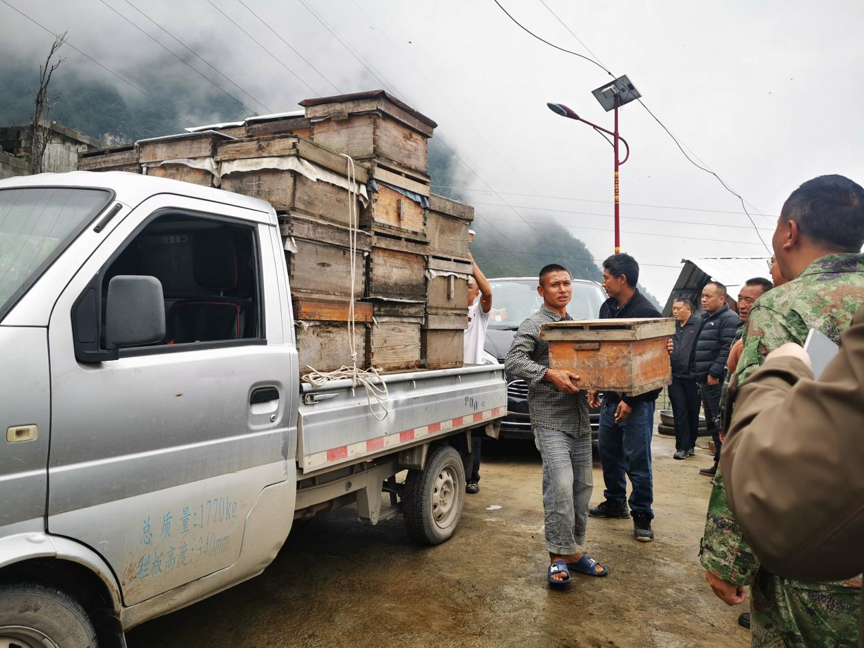 “老表,给你送来两箱蜜蜂,我教你怎么养蜂增收!”10月15日一大早,动物科技学院杨明显教授来到雷波县千万贯乡石板滩村、千万贯村,为当地村民免费发放近百箱蜜蜂,帮助村民通过养殖蜜蜂致富增收。