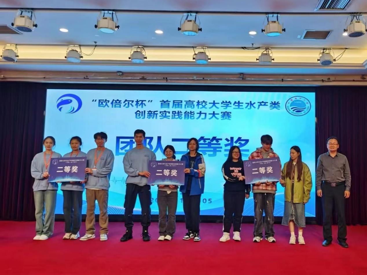 我校派出蒲荠月、王翔、陈紫嫣三位水产养殖学专业本科生组队,由姜俊教授、陈德芳副教授和张鑫副教授三位教师担任指导老师。我校与来自中国海洋大学、中山大学、中国农业大学、华中农业大学和南京农业大学等全国34所高校的102名选手同台竞技,经过激烈角逐,荣获团队二等奖,展示了我校水产养殖学专业本科生扎实的理论基础和娴熟的实践技能。