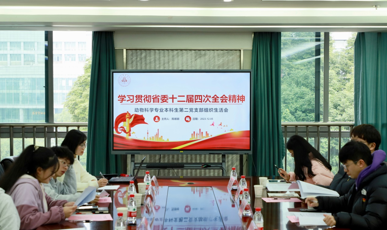 12月5日下午,动科学院动科专业本科生第二党支部在成都校区第一综合教学楼305室开展了“学习贯彻省委十二届四次全会精神”专题组织生活。校党委书记庄天慧教授莅临指导并讲话。