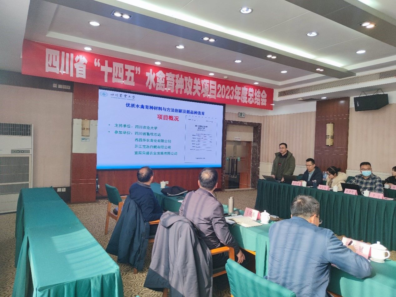 1月10日下午,四川省“十四五”农作物及畜禽育种攻关项目“优质水禽育种材料与方法创新及新品种选育”2023年度总结会在成都锦弘交通商务酒店召开。四川省农村科技发展中心主任王敬东、四川省农科院科技管理处研究员何希德、四川省畜牧总站站长舒长斌等研究员,项目首席专家、我校动物科技学院王继文教授等项目组骨干成员以及企业师生代表近30人参加了会议。会议由王继文主持。