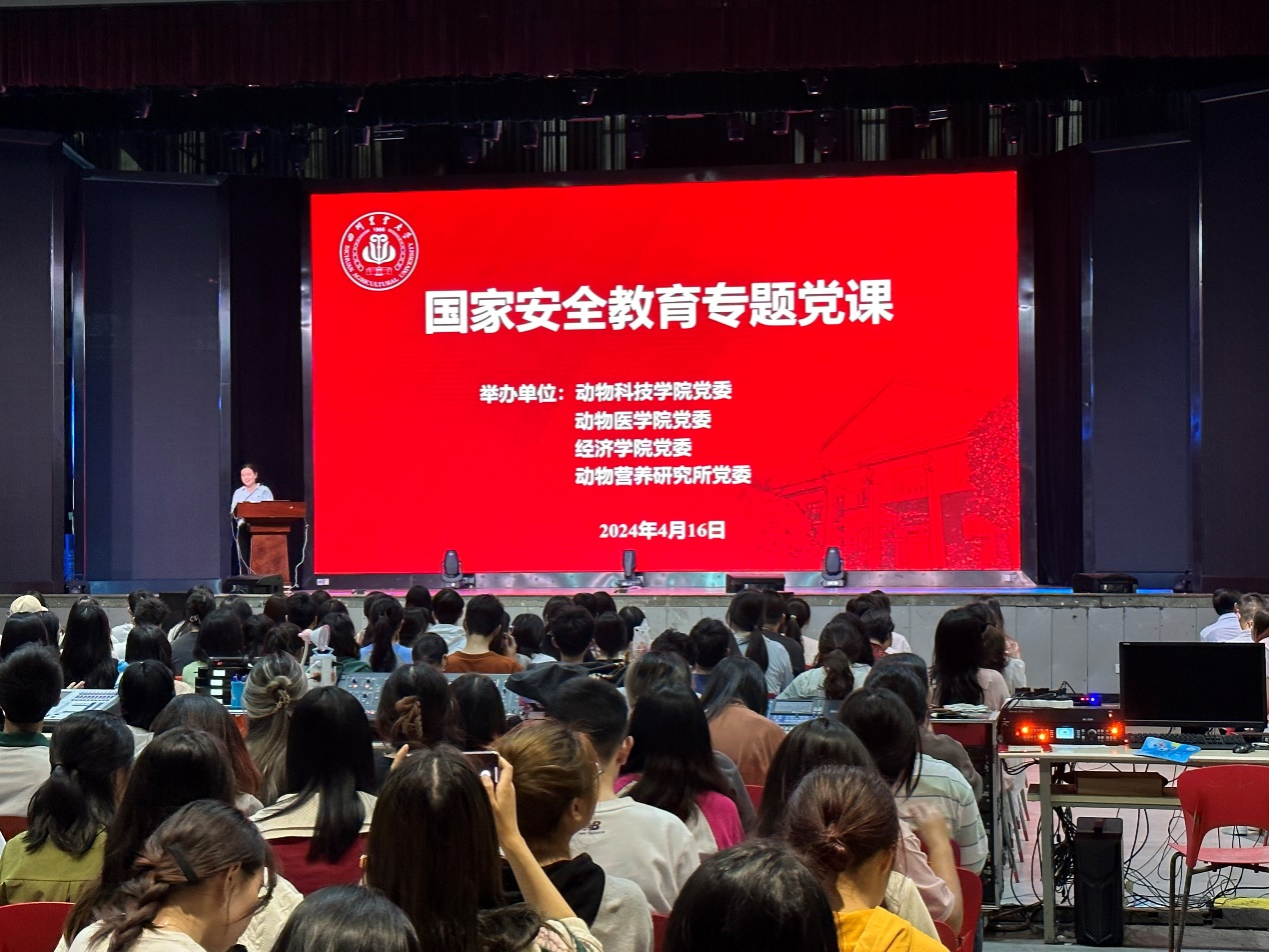 4月16日下午,由经济学院、动物科技学院、动物医学院、及动物营养研究所等四院所党委,联合主办的国家安全教育专题党课在成都校区麦立方举行。此次党课的主题为“备豫不虞 为国常道 总体国家安全观 创新引领十周年”,旨在通过深入浅出的讲解,提高师生党员的国家安全意识,共同筑牢国家安全防线。活动吸引了四个单位共计800余名师生党员参加。