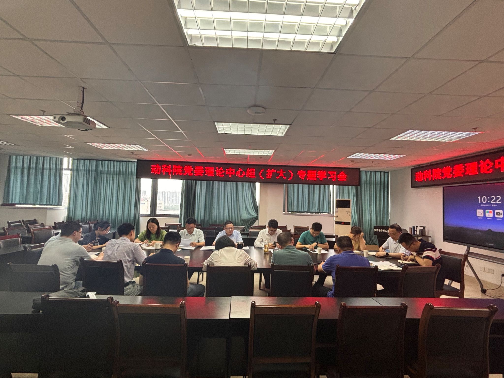 院党委中心组成员,各系室中心主任、国重专职秘书参加会议。会议由党委书记何桦主持。
