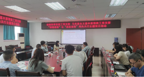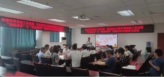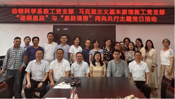 5月28日下午,动科学院动物科学系教工党支部与马克思主义学院马克思主义基本原理教工党支部联合开展“课程思政”与“思政课程”同向共行主题党日活动。动科院党委书记何桦、院长朱砺、动物科学系教工党支部书记曾长军,马克思主义学院副院长邱高会、马克思主义基本原理教工党支部书记张强及两个支部党员同志30余人参加。会议由曾长军主持。