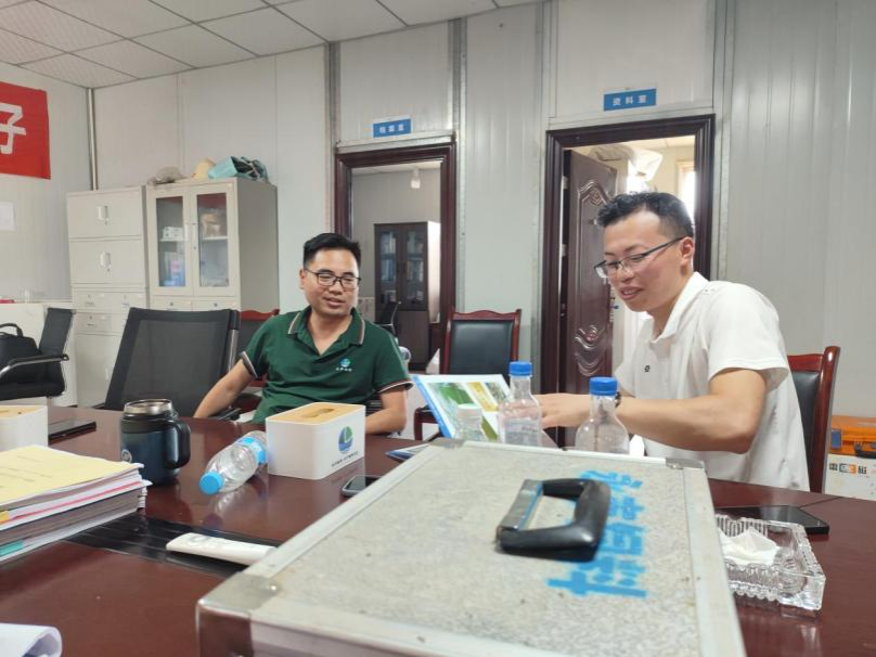 图为团队刘巧老师与负责人进行交流。通讯员严寒供图