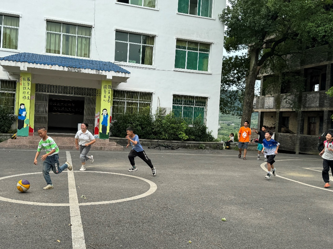 (小朋友们课后与志愿者一起运动)