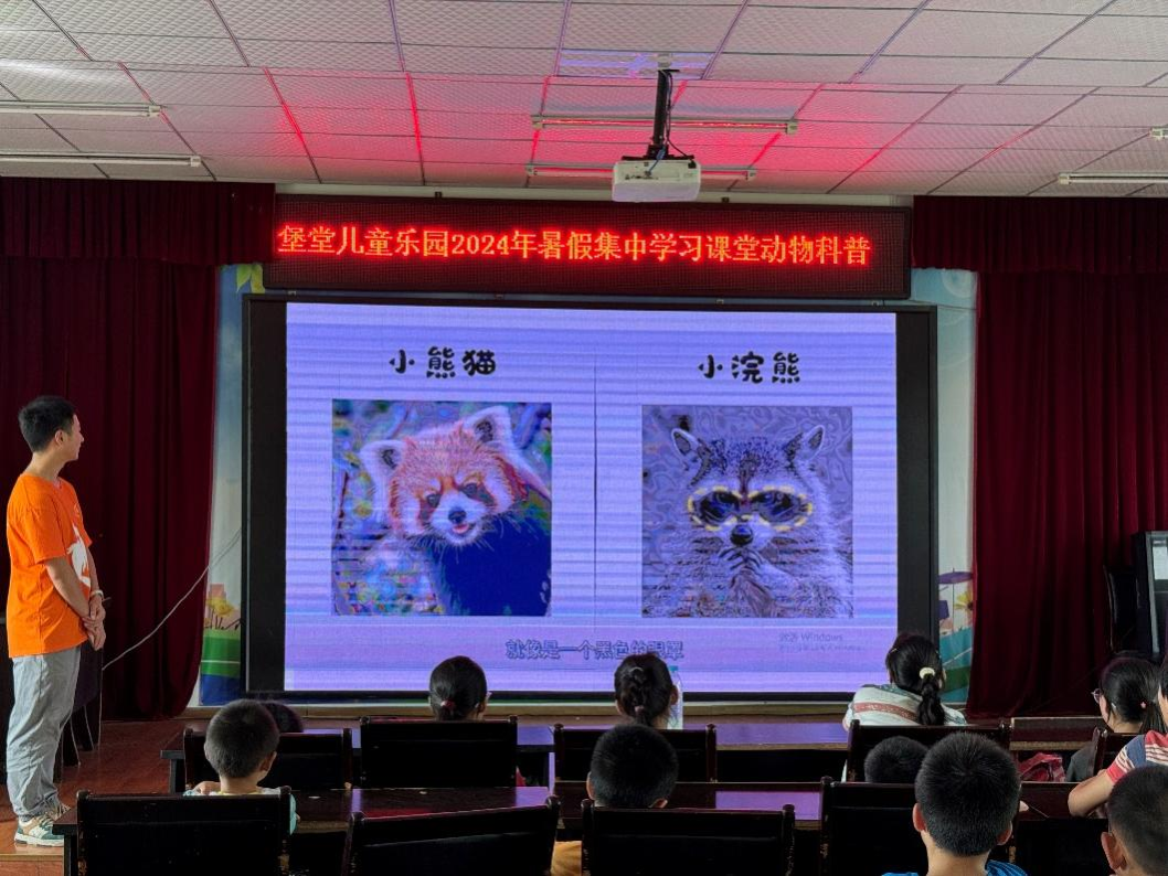 动物科普,寓教于乐。联系本专业学科特色,志愿者胡峰玮同学为小朋友们带来动物科普课。从四大板块,由表及里,由浅及深。以趣味作引缓缓步入主题--科普动物,喜爱动物,更应该保护动物。志愿者采取图文辅以视频的形式,结合课堂实时问答互动,使孩子们的兴趣高涨,为动物多样性保护提供实践和理解的基础,激发了热爱大自然的美好情感,引导了孩子们学会与动物和谐相处,在成长过程中主动宣传和倡导动物保护的理念。