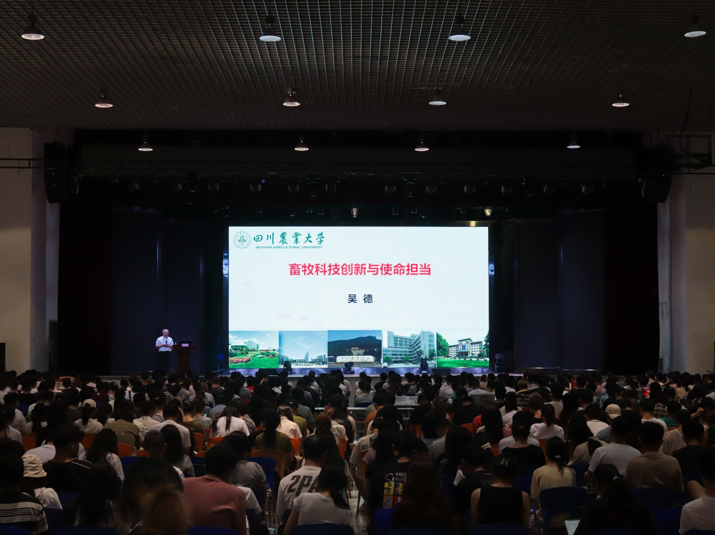 9月6日下午,动物科技学院、动物营养研究所在成都校区麦立方开展2024级本科生、研究生新生入学教育,特邀请校长吴德教授讲授课程。院所领导班子、系室主任、2024级新生班主任及全体新生600余人参加。