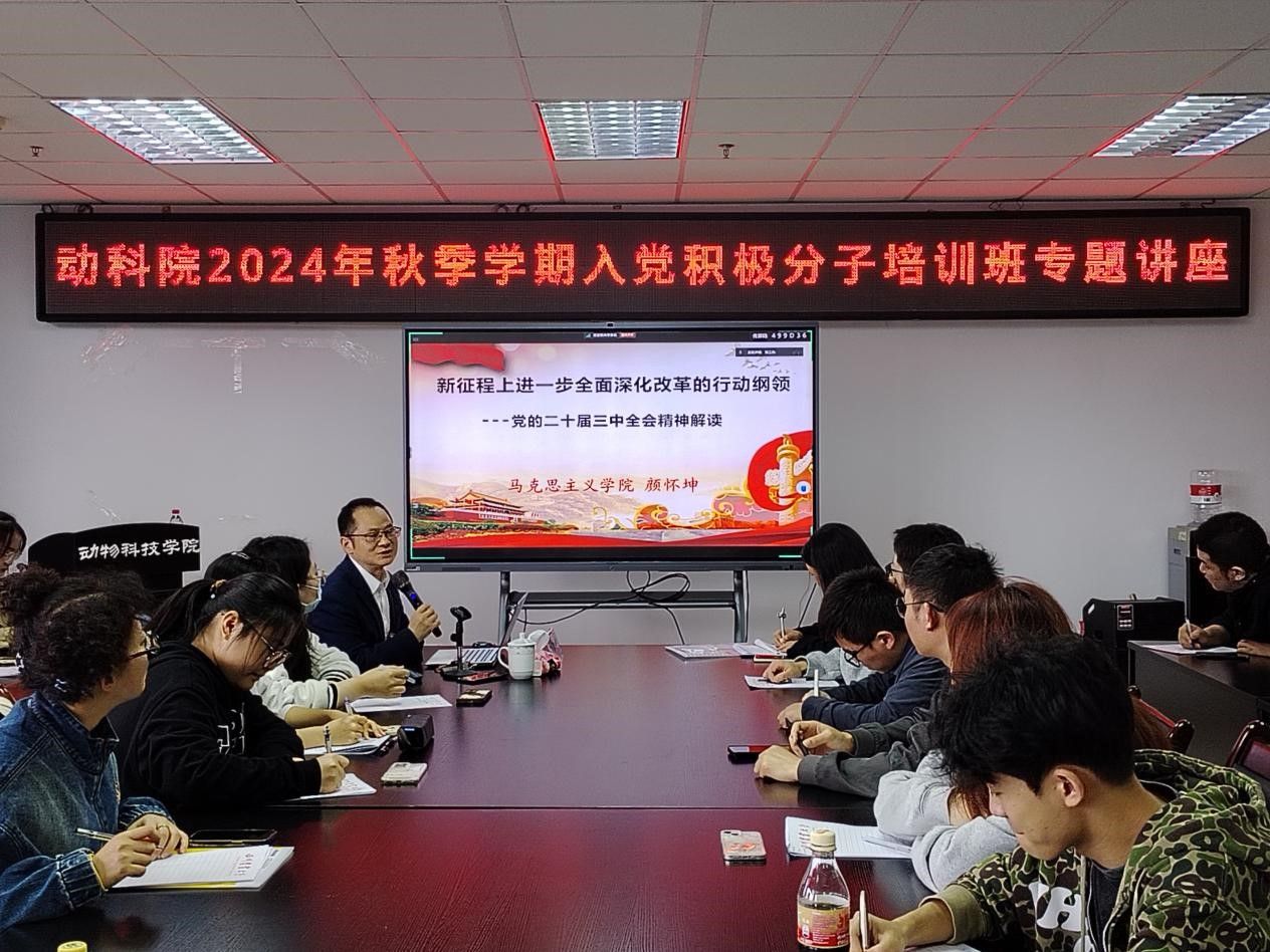 马克思主义学院党委副书记、纪委书记颜怀坤以《新征程上进一步全面深化改革的行动纲领》为题为学员深入解读了党的二十届三中全会精神,围绕会议基本情况、以深化经济体制改革为牵引、注重系统集成提升改革整体效能、加强党的领导强化改革实效等方面对党的二十届三中全会精神进行系统阐释和详细解读。他明确了新征程上进一步全面深化改革的行动纲领,为学员深刻分析了当前的国际国内形势,告诫学员面对新一轮科技革命和产业变革,要坚定不移地把改革推向前进,不负所托为人民服务。