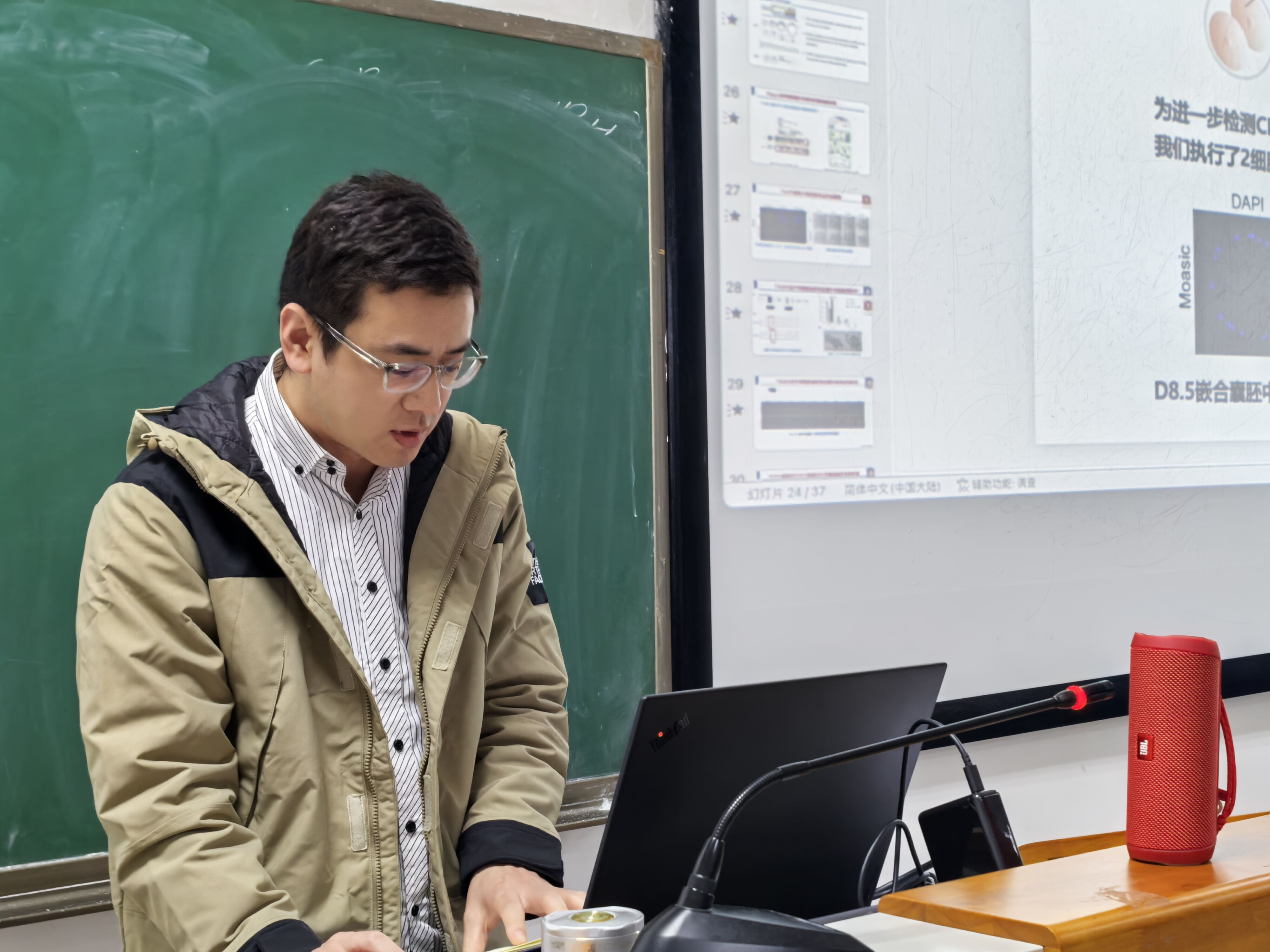 张坤研究员探讨了利用下一代测序技术和基因编辑技术探究牛着床前后早期胚胎胚层分化规律和机制,并与同学们进行了深入的学术交流。