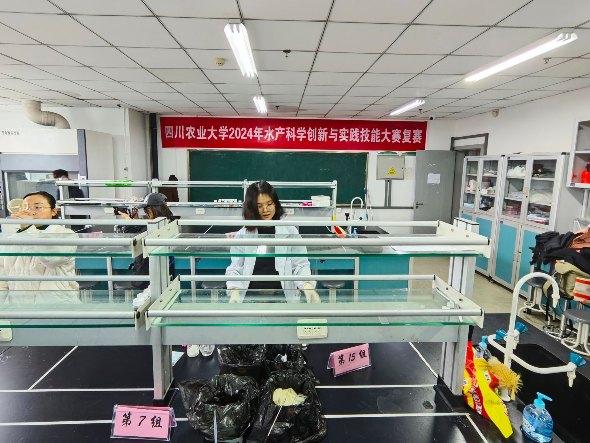 本次技能大赛自启动以来,历时1个多月,从初赛的理论赛项、复赛的实验操作,到决赛的主题汇报,每一步都见证了水产学子们的不懈努力。活动全程由水产养殖学专业2021级的七名保研同学提供组织服务。