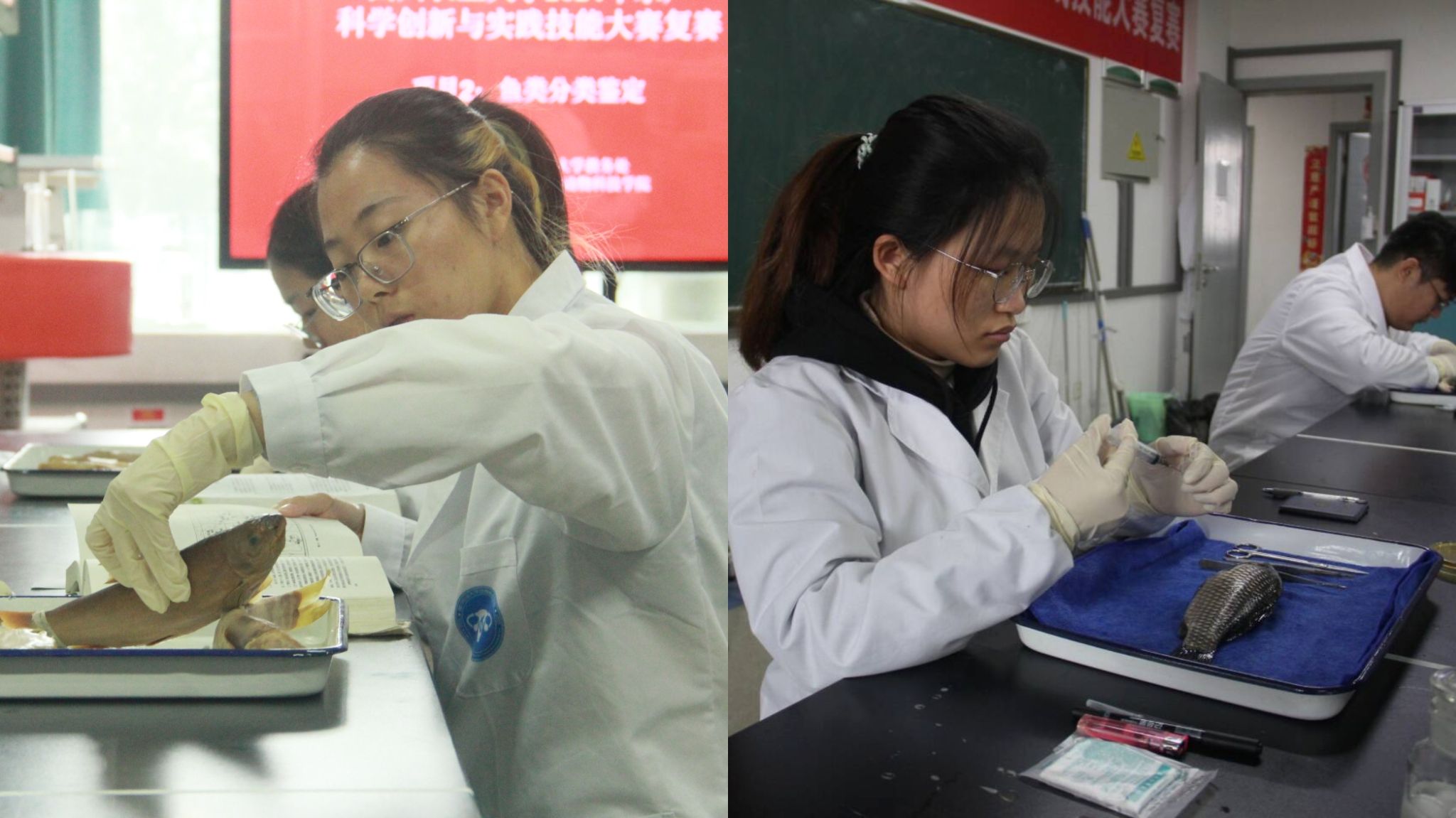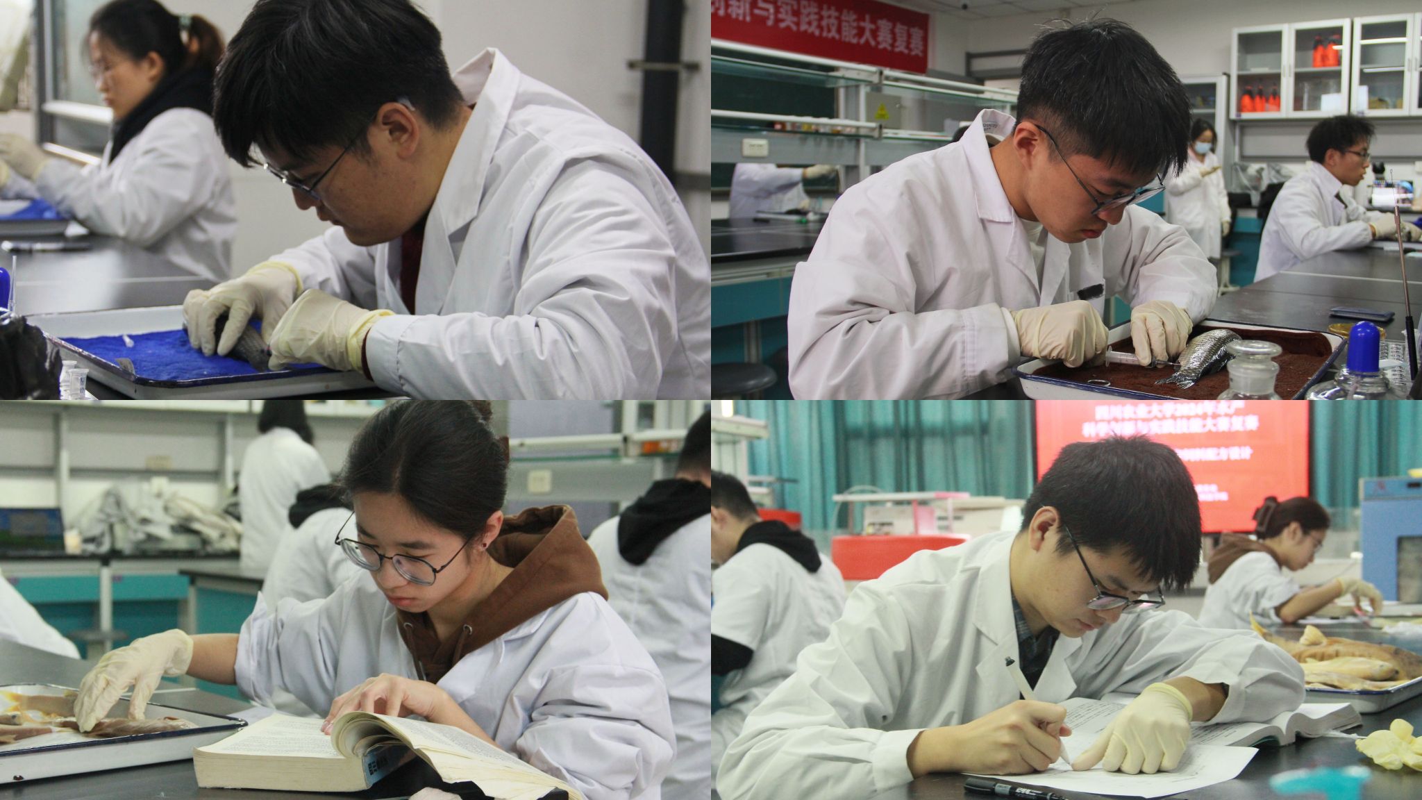 复赛采取了跨年级组队模式,促进了不同年级学生间的交流与合作,并围绕三门专业核心课程,设置了鱼类分类鉴定、疾病诊断、原料辨别及饲料配方设计等三大实操技能比赛项目。经过激烈比拼,最终遴选出12支团队晋级决赛。