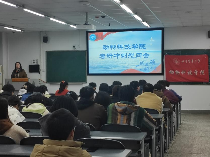 12月6日,动物科技学院在4B-304教室成功举办了考研冲刺慰问会。活动特邀动物科技学院党委副书记、纪委书记杨雪,党委办公室副主任、团委副书记舒正悦等四位老师,现场表达对2021级考研学子的深切关心与鼓励。