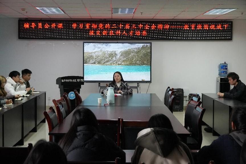 12月5日,学院党委副书记、纪委书记杨雪在七教1011会议室以《学习贯彻党的二十届三中全会精神—教育强国视域下拔尖新农科人才培养》为题,面向联系的动物科学专业本科生党支部、研究生第一党支部党员及入党积极分子共计50余人开展了辅导员公开课。