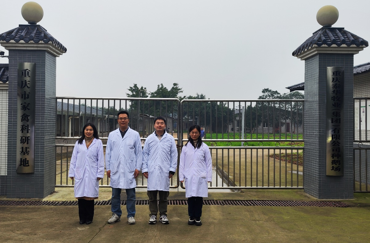 近日,四川水禽创新团队水禽育种与繁殖技术岗位专家、四川农业大学动科学院动物遗传育种研究中心副主任胡深强前往重庆市畜牧科学院进行考察交流。在重庆畜科院李琴研究员、赵献芝研究员和王郁石助理研究员以及西南大学动物科学技术学院唐彬铖博士的陪同下,胡深强首先来到重庆泰华牧业(集团)有限公司,实地考察了国家级肉鹅核心育种场、四川白鹅保种场,并了解了荣昌区乃至重庆市肉鹅市场消费需求,国审配套系渝州白鹅持续育种目标、选育技术难点及其示范推广,疫病防控与粪污资源化利用,以及四川白鹅保种群大小及特征特性保留等情况。