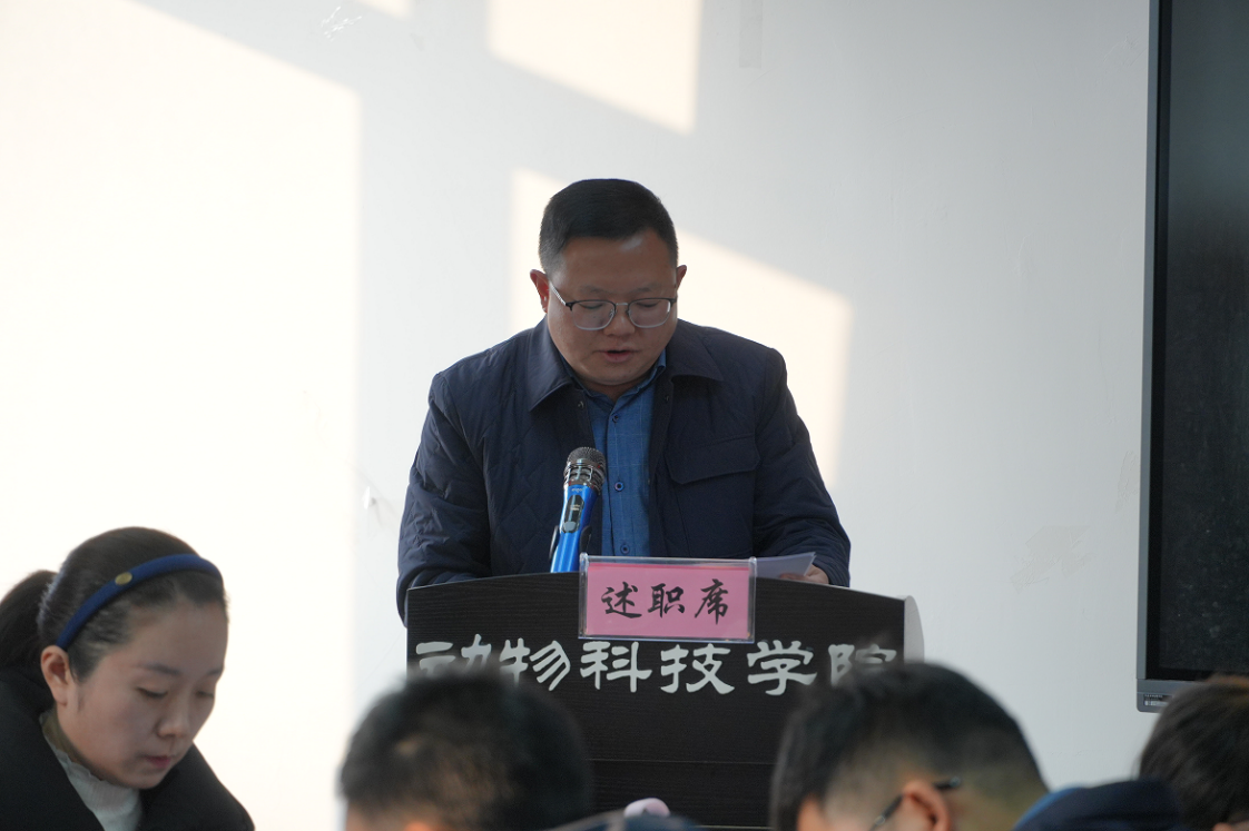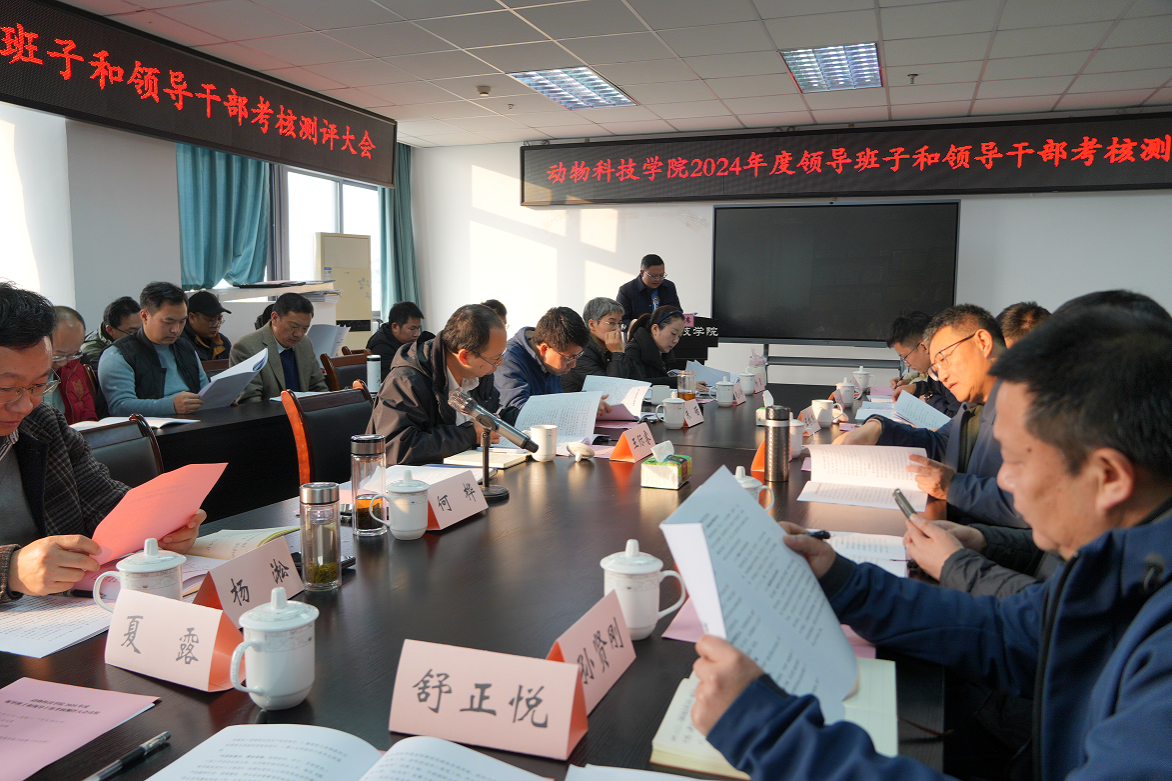 12月17日下午,动物科技学院在7教1011会议室召开领导班子和领导干部考核测评大会。联系校领导王际睿同志莅临指导,全院教职工参加会议。会议由院党委书记何桦主持。