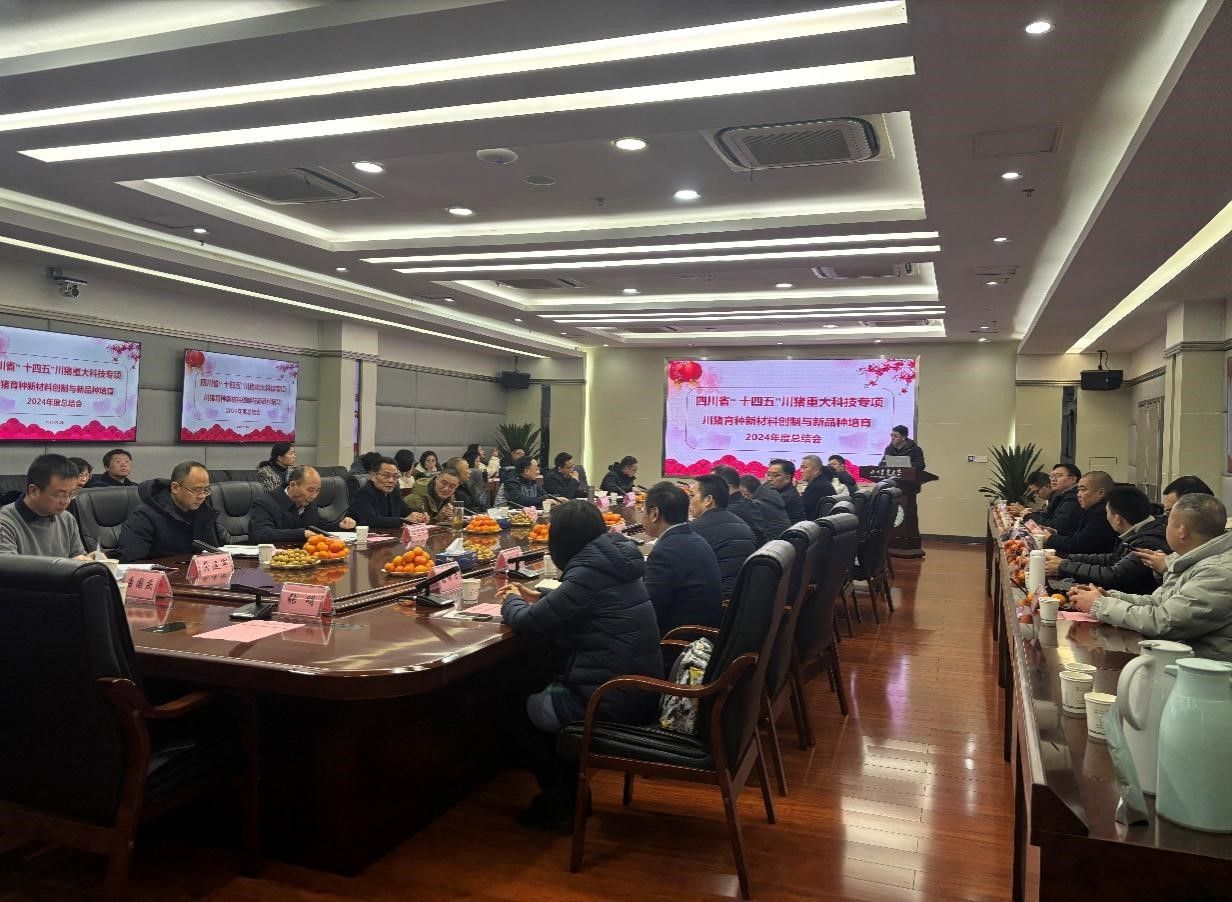 1月6日,我校动物科技学院曾长军教授主持的四川省“十四五”川猪重大科技专项“川猪育种新材料创制与新品种培育”2024年度项目总结会在四川农业大学成都校区1-301室召开。四川省科学技术厅资源配置处二级调研员屈智、四川省农村科技发展中心周华强副主任、项目专家委员会组长陈代文教授、项目责任联系专家四川省畜牧科学研究院吕学斌研究员莅临会议指导,项目全体特邀咨询专家,省畜牧总站、铁骑力士食品有限责任公司等8家项目参与单位的30余名相关人员参与此次会议,会议由动科学院院长朱砺教授主持。