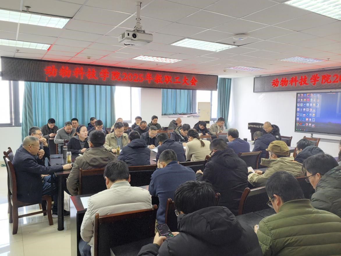 党委书记何桦指出,2025年作为“十四五”收官与“十五五”布局的承启之年,学院将以奋进之姿把握历史机遇,在攻坚克难中开创新局,着力构建“四个维度”发展格局:一是铸师魂之本,以教育家精神涵养育人初心,通过课堂教学、管理服务多维渗透价值引领、知识传授与品格塑造。二是聚党建之能,深度推进党建和业务的融合,思考融合的路径、找准融合的重点,形成独属动科特色的党建品牌,进一步提高学科影响力。三是强发展之基,引导教师夯实日常积淀,在职称晋升、团队建设等关键环节蓄能发力,同步聚焦学生核心素养培育,围绕综合素质、创新能力、社会适应力构建育人闭环,全面提升院风学风质量与就业工作实效。四是创特色之路,以竞争意识强化对标发展,通过兄弟院系精准对标实现优势互补、错位协同,在特色学科建设与核心竞争力培育中推动稳步发展。