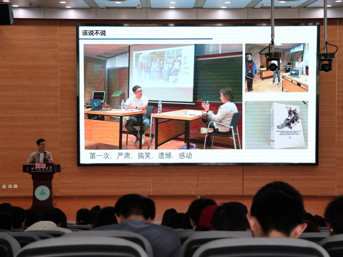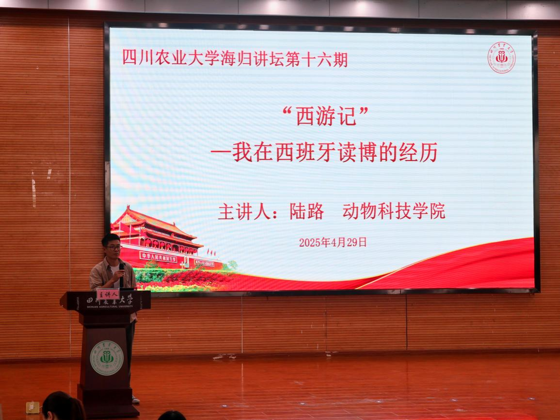 据悉,“海归讲坛”是党委统战部为进一步贯彻落实习近平总书记关于高等教育系列重要讲话精神而推出的系列专题讲座,旨在通过展现学校中青年教师风采,激发新时代学生成长成才的内生动力,同时通过发挥留学归国人员特有的育人功能,厚植广大师生员工兴农报国的使命情怀。自2019年举办第一期以来,目前已累计邀请16名从哈佛大学、剑桥大学等知名院校留学归来的青年教师作客讲坛,后续也4月29日下午,由学校党委统战部及留联会主办、动物科技学院承办的“海归同心·筑梦川农”海归讲坛第十六期在成都校区二教报告厅开讲。本期讲坛特邀四川省“天府峨眉计划”青年人才、四川省海外高层次留学人才陆路副教授主讲,讲坛由动物科技学院党委副书记、纪委书记杨雪主持,300余名师生共同聆听本次讲座。