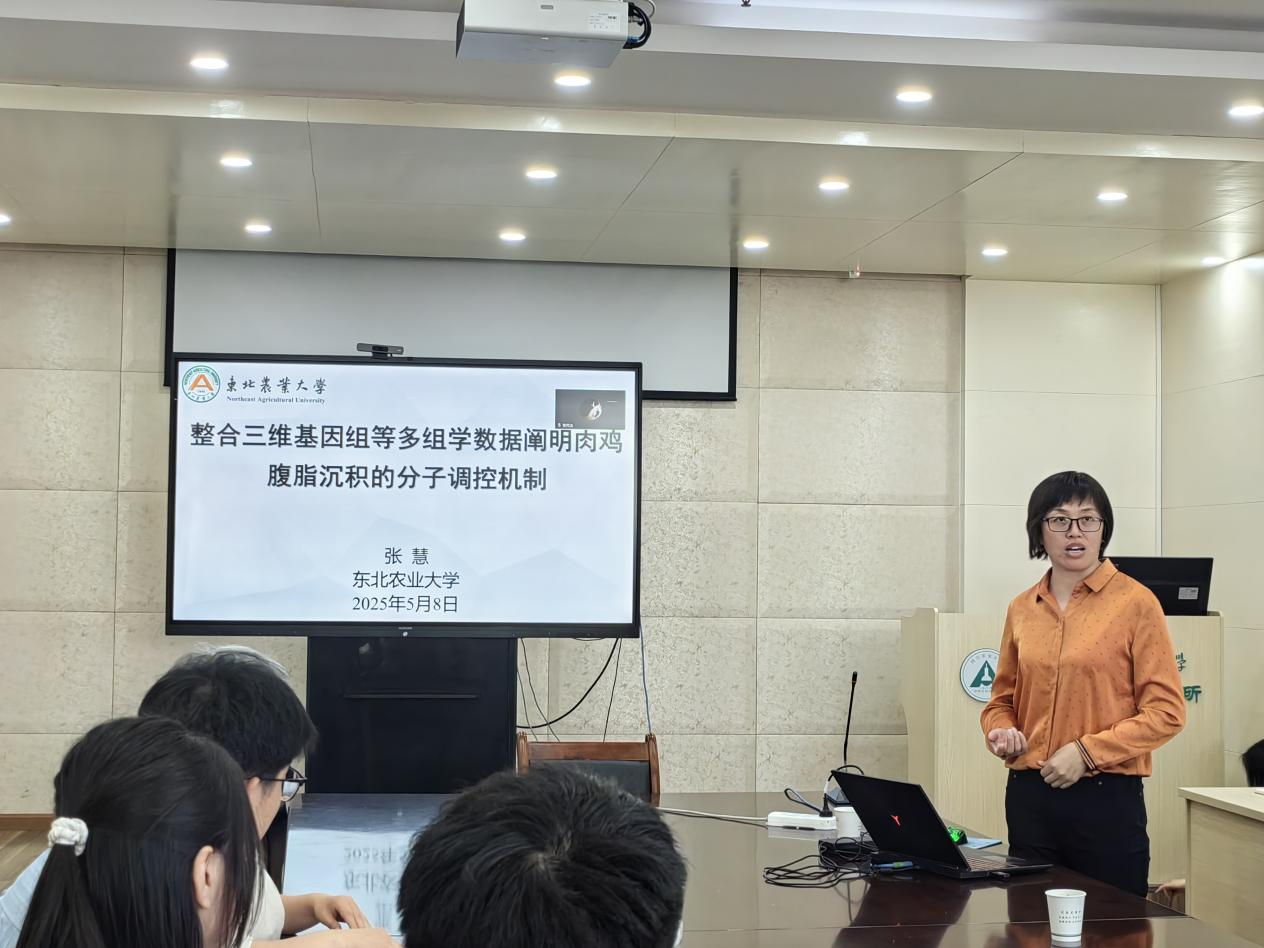 在交流环节,张慧教授与现场师生就多组学数据整合策略、高低脂系鸡的育种思路等问题进行了深入讨论,现场气氛热烈。
