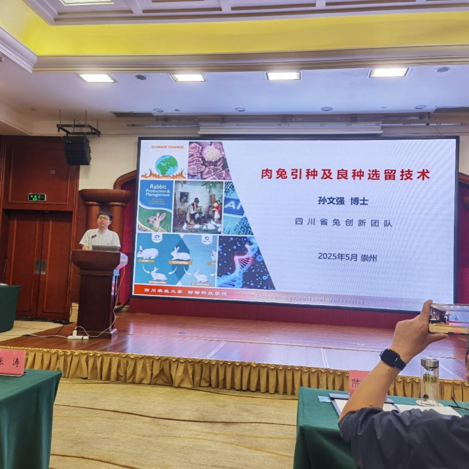 为提升地方肉兔养殖水平,近日,四川省兔创新团队成员、动物科技学院贾先波副教授、孙文强博士以及动物营养所田刚教授组团赴崇州参加国家现代农业产业技术体系四川兔创新团队现场会,孙文强博士受邀开展“肉兔引种及良种选留技术”培训,为当地养殖企业和养殖户提供实用化的技术服务。