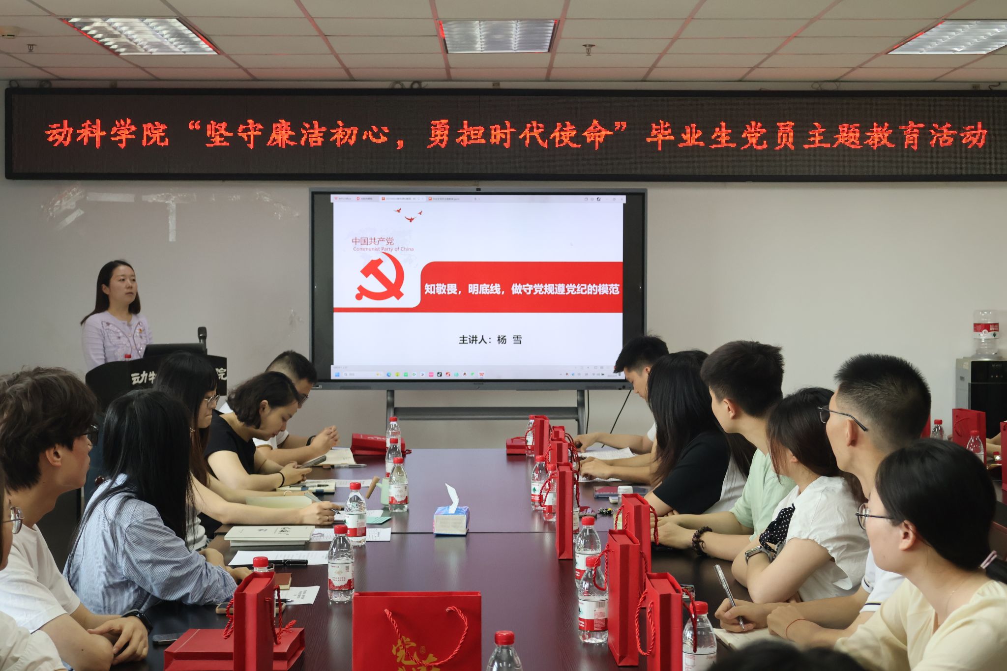 为扎实做好2025届毕业党员教育工作,引导其坚定理想信念、践行使命担当,充分发挥在文明离校中的先锋模范作用,增强爱校荣校情怀,营造积极和谐的离校氛围,5-6月,动物科技学院党委开展了“坚守廉洁初心,勇担时代使命”毕业生党员“五个一”系列教育活动。