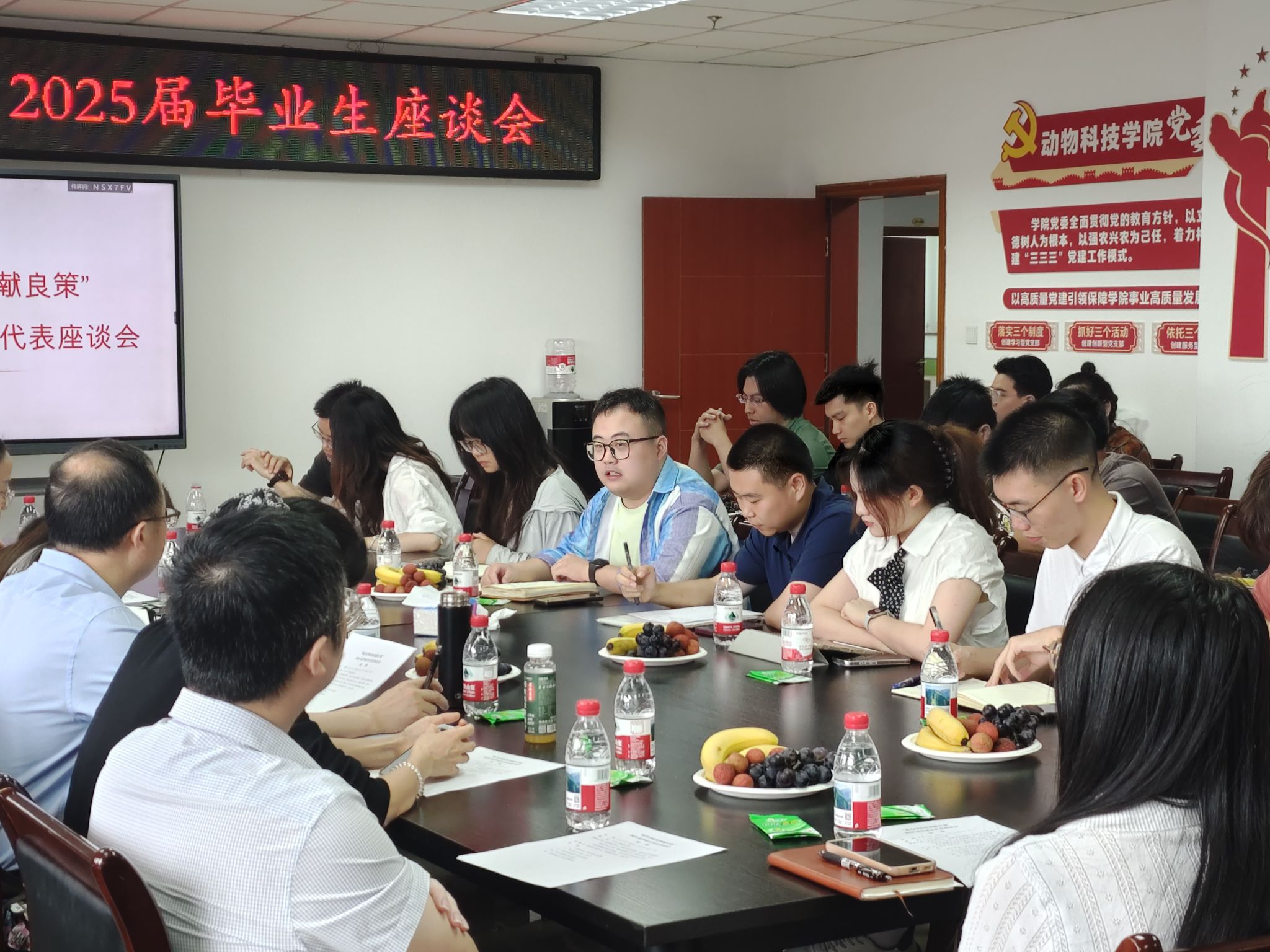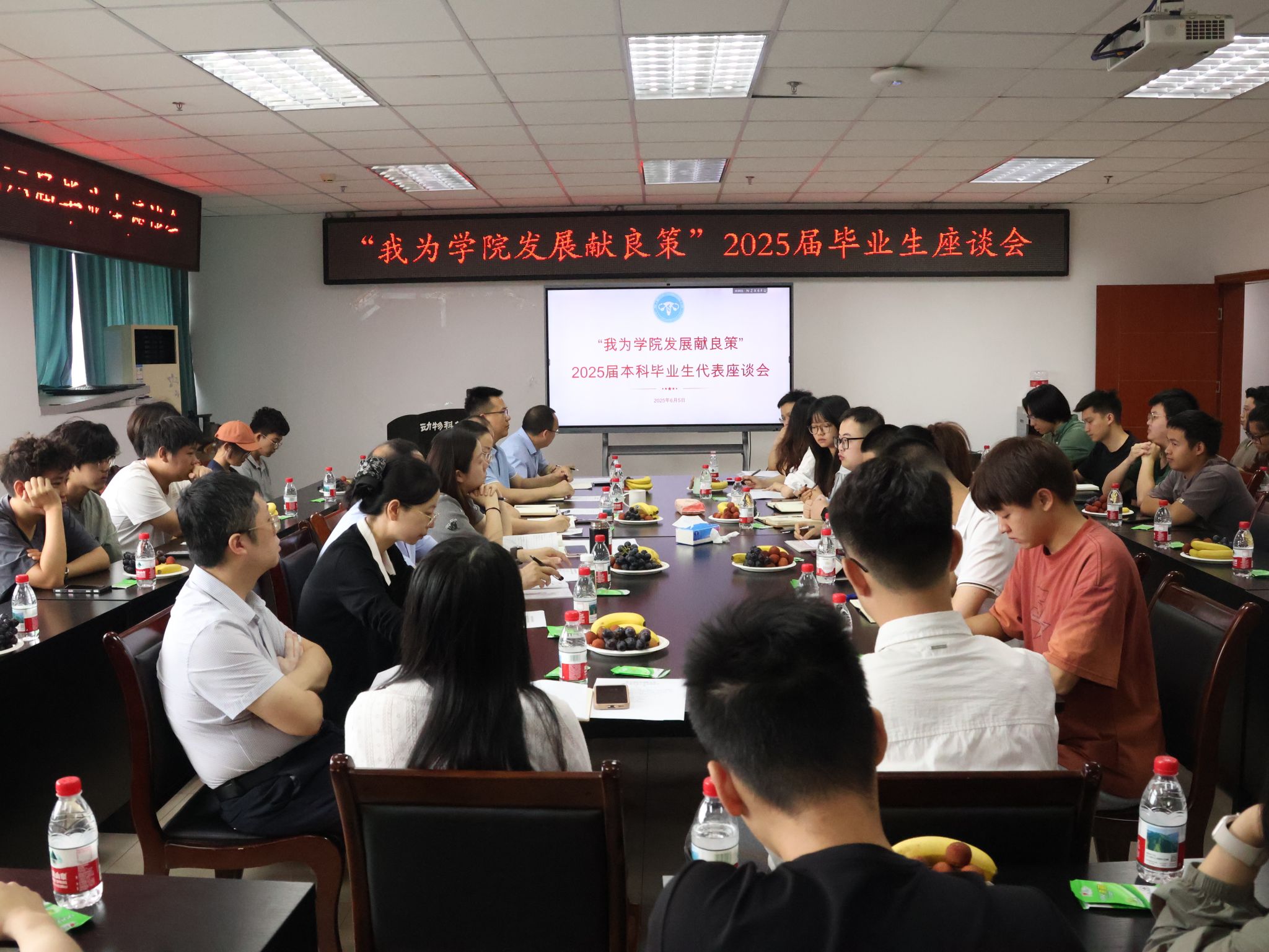 6月5日上午,学院在七教1011会议室召开2025届毕业生代表座谈会。学院党委副书记、纪委书记杨雪、各系室中心正副主任、全体辅导员老师、2025届本硕博毕业生代表及24级新生代表参会。会议由学院党委办公室副主任、团委副书记舒正悦主持。